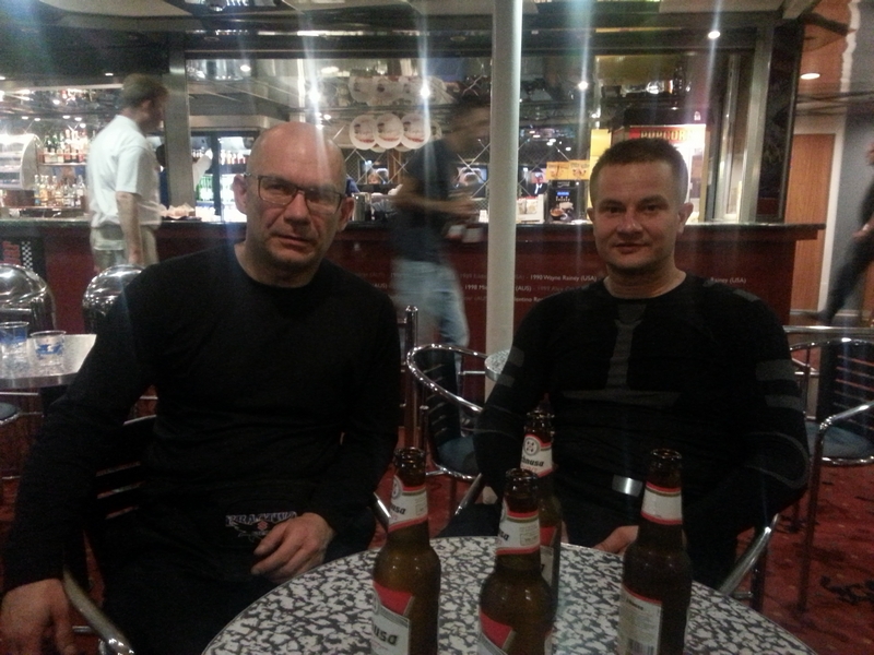 Zbawienne piwko już na pokladzie w barze.