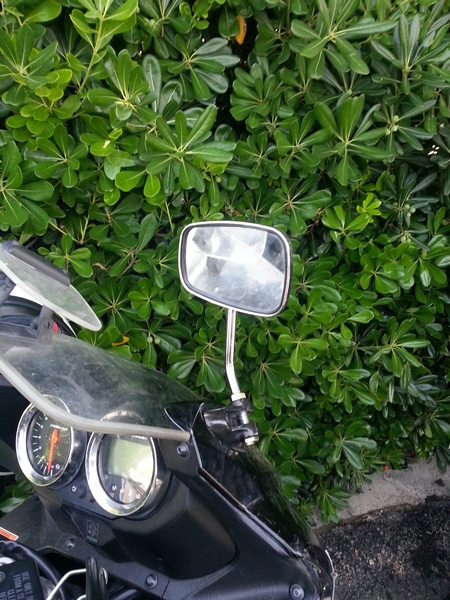 Na pierwszym planie lustereczko, w którym Piotrek mógł się przeglądać podczas jazdy.