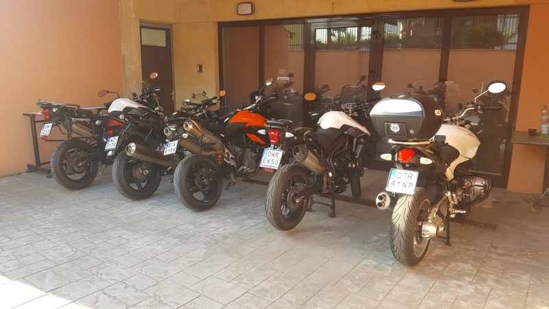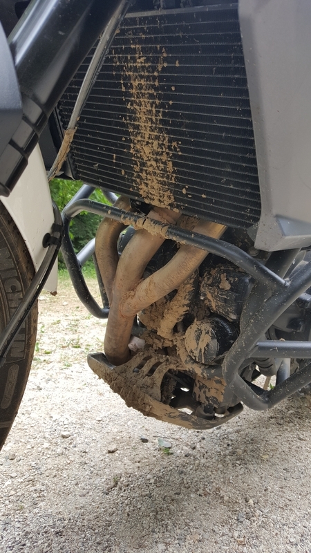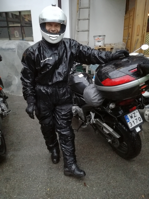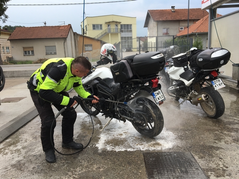 I nawet jest parking z kranem, myjemy siebie i troche moto