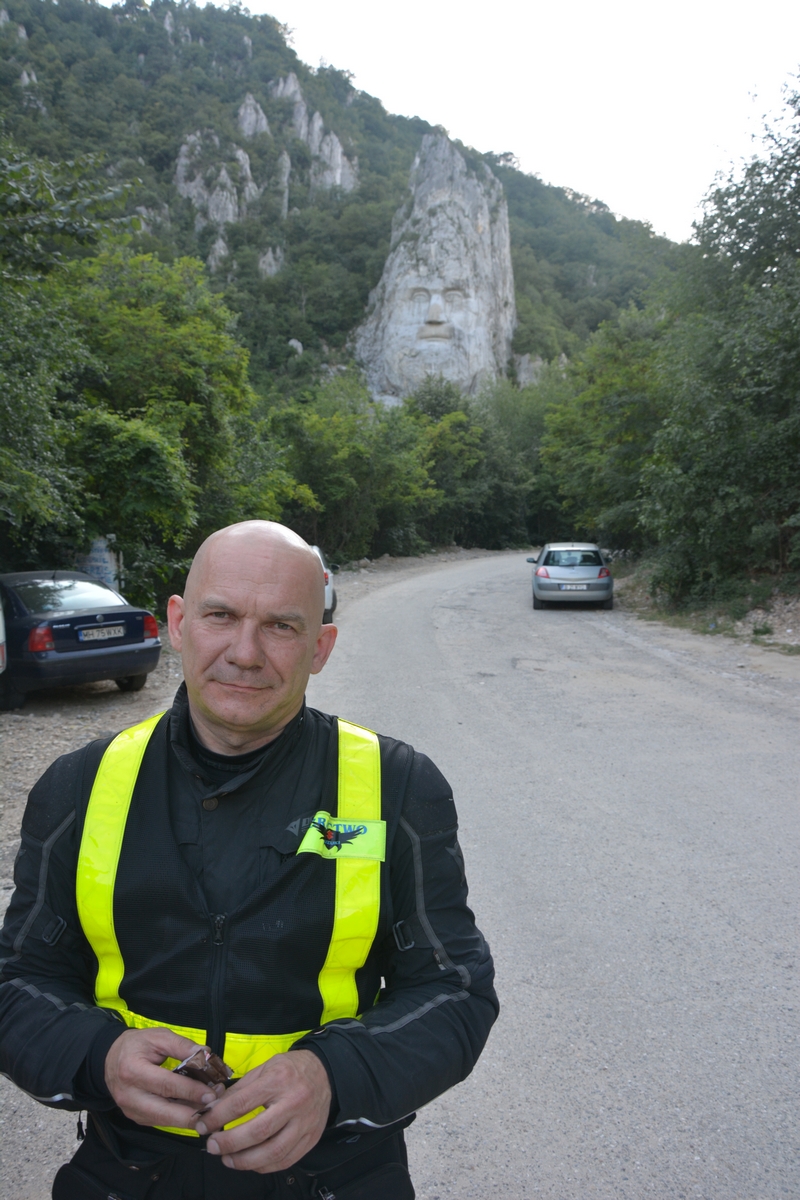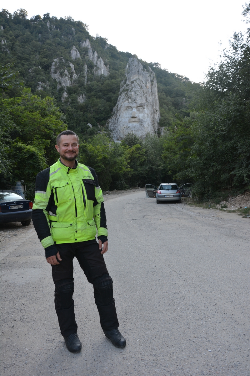 Na konniec dnia jedziemy wzdłuż Dunaju na granicy z Serbią. Cudowna droga i zerowy ruch na niej. Docieramy do “Rock sculpture of Decebalus”