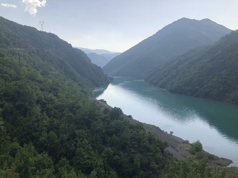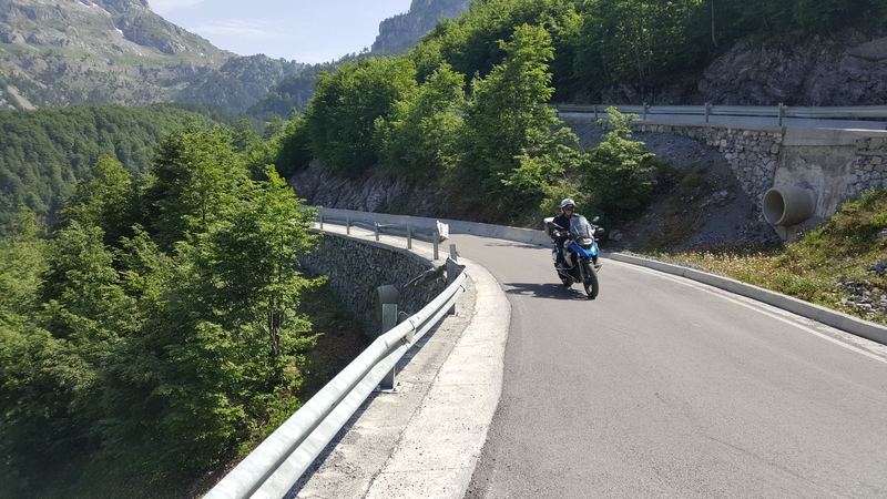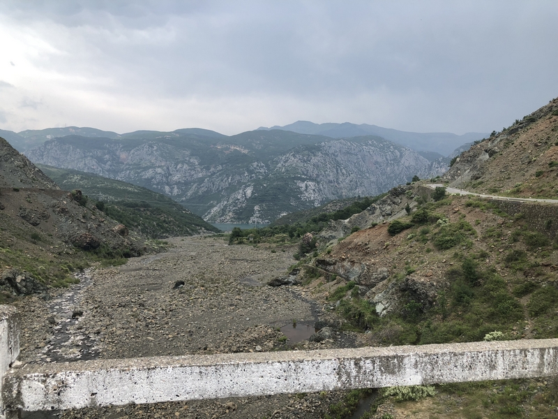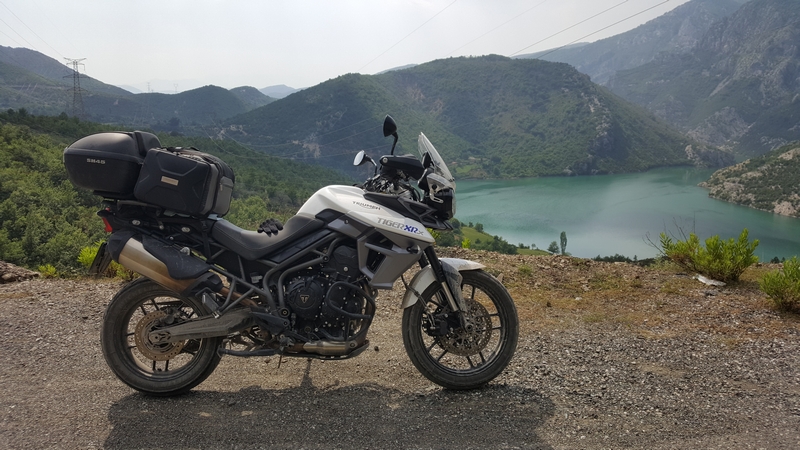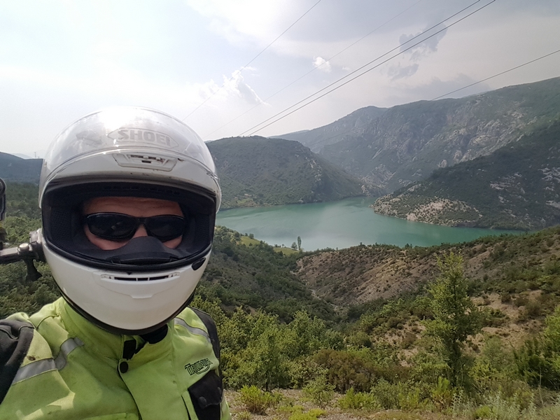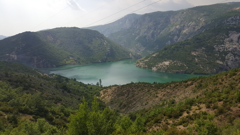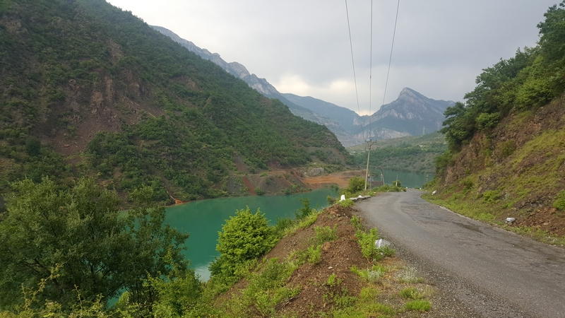 Trasa do Theth i z powrotem zajęła nam ponad pół dnia, a to w sumie tylko około 120km. Jedziemy dalej. Chytry plan był taki, że docieramy do Komani wsiadamy na prom i płyniemy podziwiając krajobrazy. No ale plan legł w gruzach bo się okazało, że prom odpływa raz dziennie o 9 rano, a my byliśmy tam koło 17:00. Zastanawialiśmy się nad spaniem tam ale jakoś nam się wiocha i klimat nie podobał…a dodam, że do Komani prowadziła również niby droga jakieś 25km jazdy po wszystkim… No to szybka decyzja, że rezygnujemy z promu i objeżdżamy trasę promu drogą. A to okolice jeziora Komani.