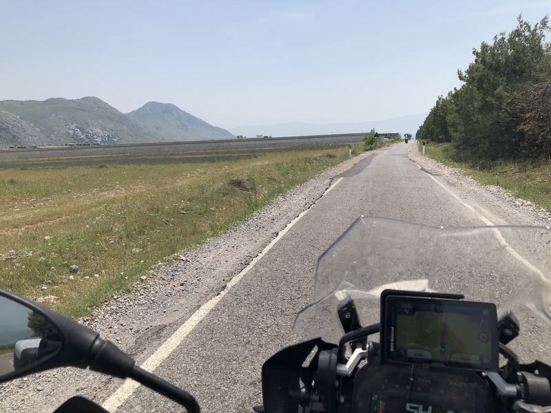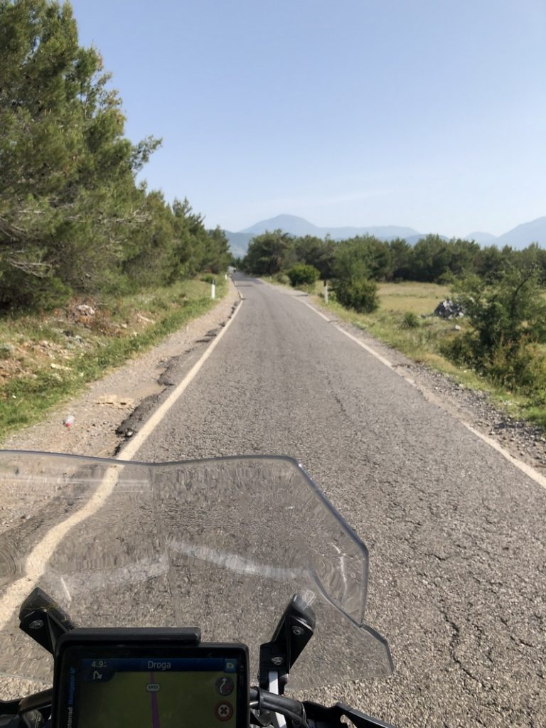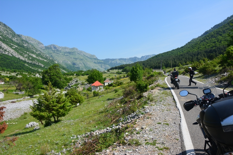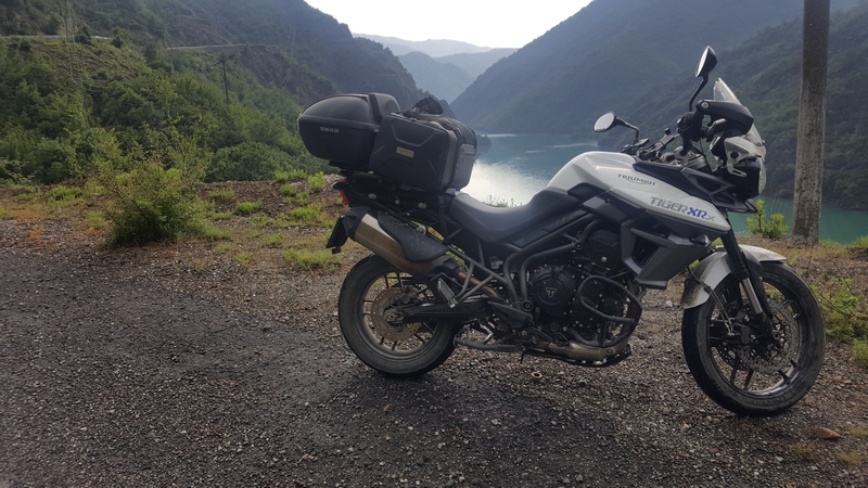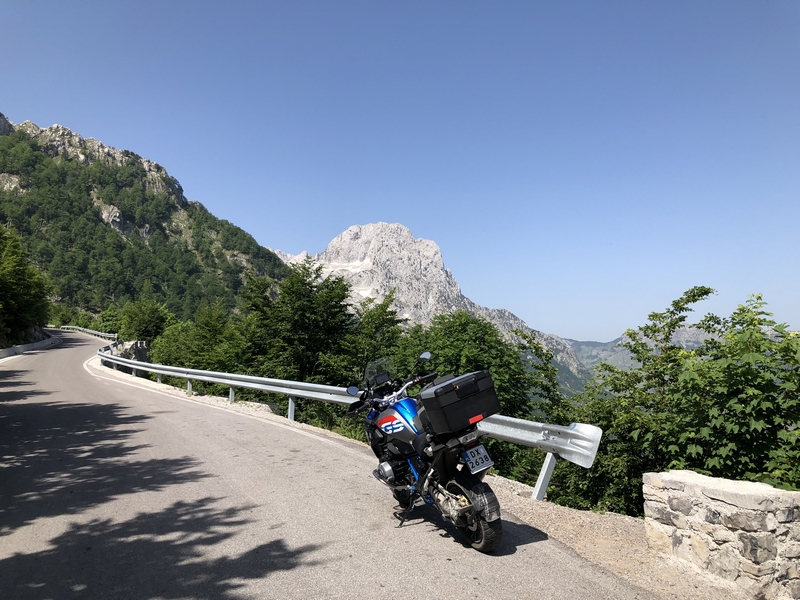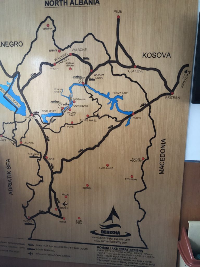 Trasa do Theth i z powrotem zajęła nam ponad pół dnia, a to w sumie tylko około 120km. Jedziemy dalej. Chytry plan był taki, że docieramy do Komani wsiadamy na prom i płyniemy podziwiając krajobrazy. No ale plan legł w gruzach bo się okazało, że prom odpływa raz dziennie o 9 rano, a my byliśmy tam koło 17:00. Zastanawialiśmy się nad spaniem tam ale jakoś nam się wiocha i klimat nie podobał…a dodam, że do Komani prowadziła również niby droga jakieś 25km jazdy po wszystkim… No to szybka decyzja, że rezygnujemy z promu i objeżdżamy trasę promu drogą. A to okolice jeziora Komani.