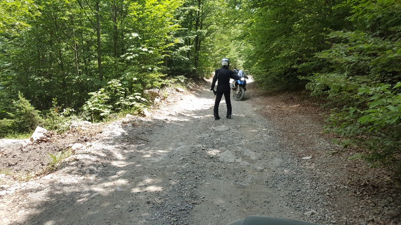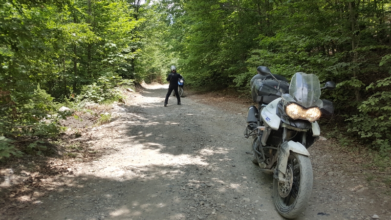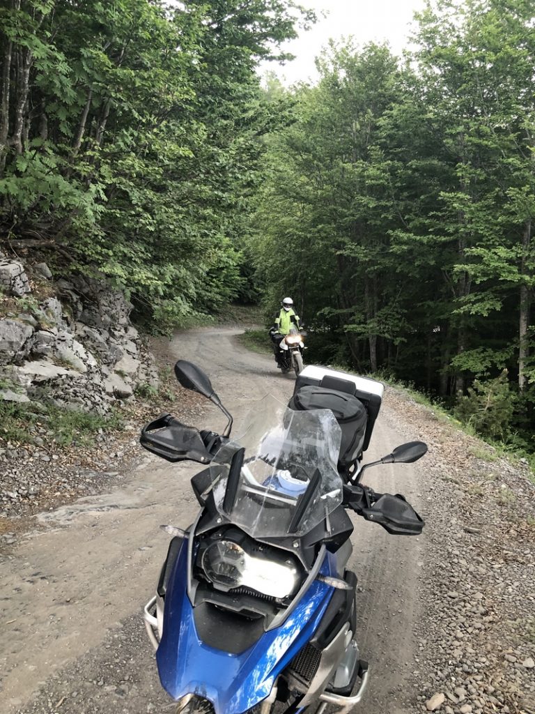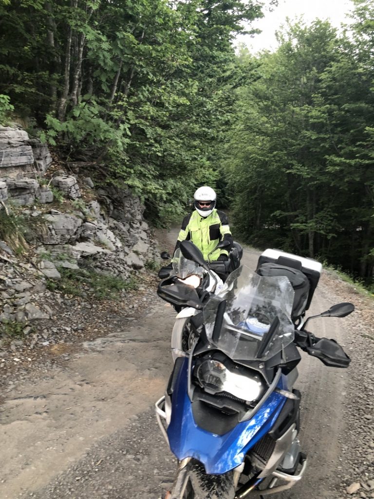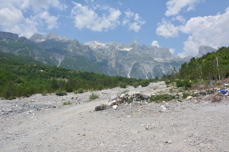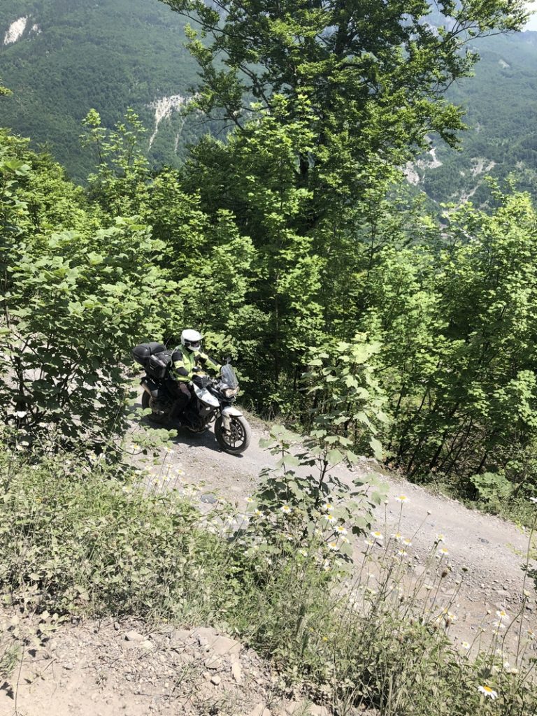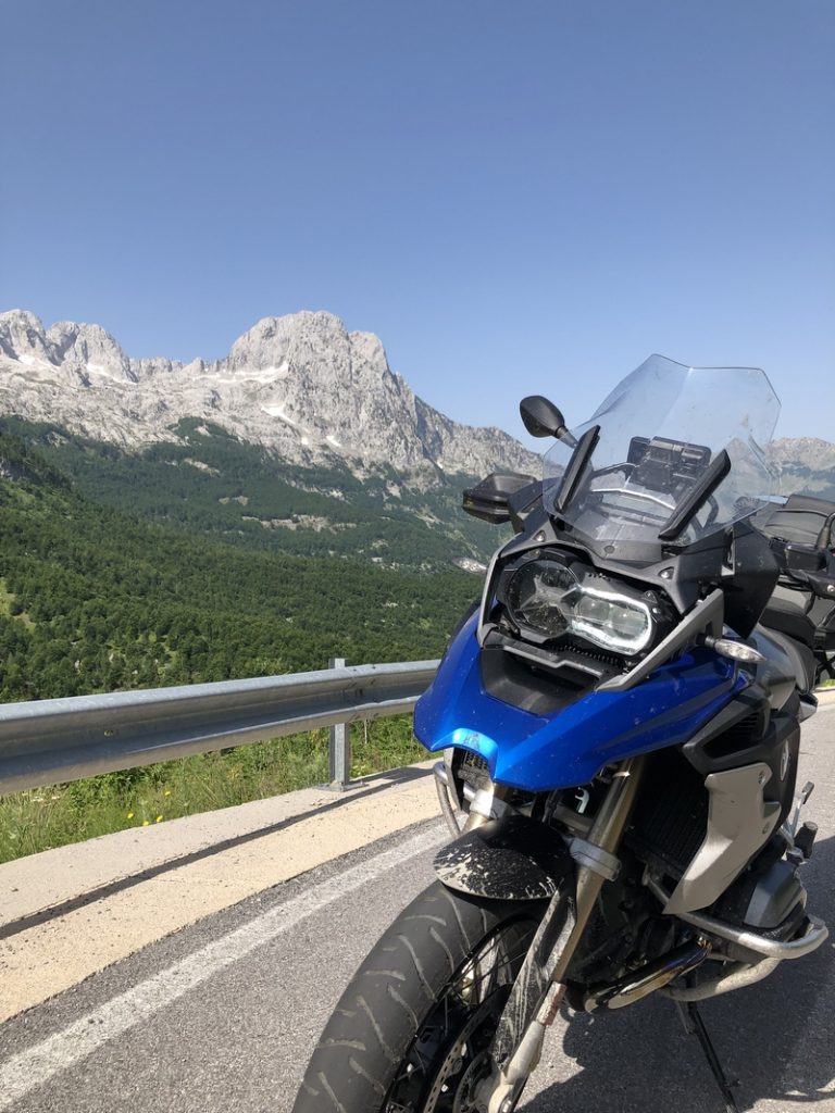 Ponieważ droga była jedna więc ja ruszyłem pierwszy a Darek jeszcze konwersował. Tuż przed samym Theth na rozdrożu pojawił się znak “Theth coś tam” po albańsku. Pomyślałem, że to inna ścieżka do Theth wiec pojechałem za znakiem. To nie był dobry pomysł, ale odwrotu nie było, trzy strumyki pokonałem ale czwarty miał z 10m no i kończył się piaseczkiem, w którym mój motocykl postanowił utknąć. Chwilę zajęła mi walka przy +40 stopniach z 300kg moto. Ale udało się i do Theth dotarłem, gdzie Darek z ludkami z Oławy popijał już zimną cole. Odpoczęliśmy no i niestety trzeba było wracać tą sama drogą.