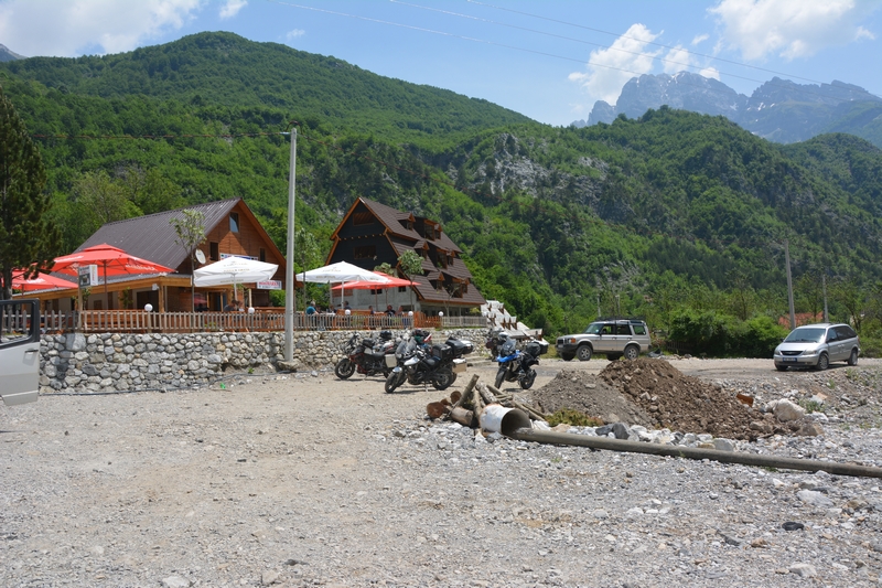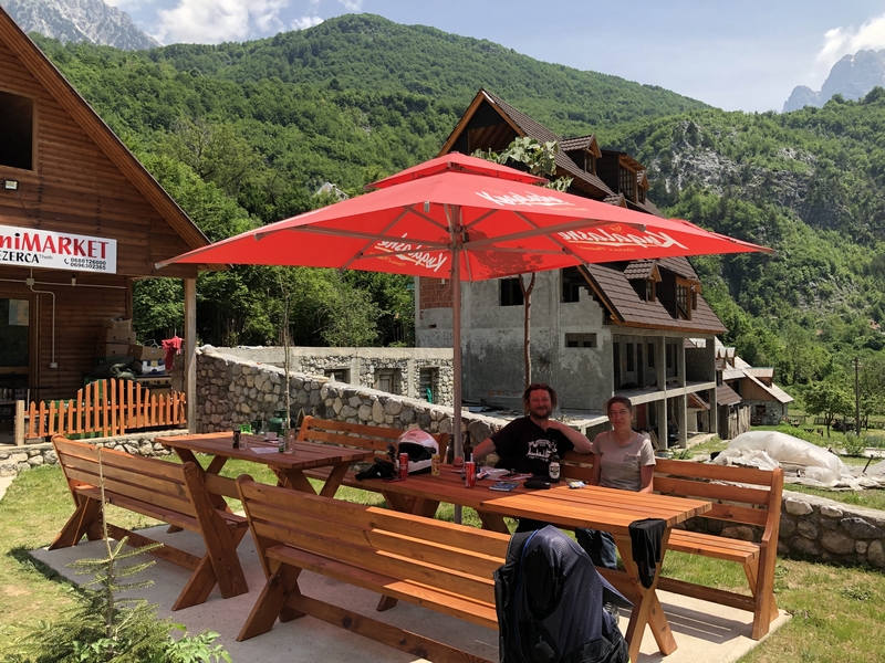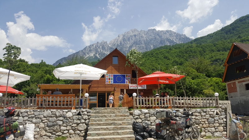 Dosłownie po 500 metrach szutru szybki postój w knajpce i spotykamy parkę z Oławy na moto. No i dalej do Theth 16km po czymś co raczej cech drogi nie miało.