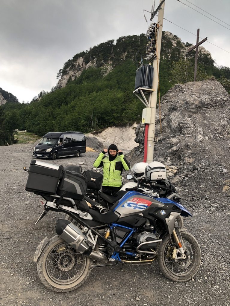 Wracamy. W samą porę bo jak dotarliśmy do asfaltu to nad Theth rozpętała się burza. Pierwszy raz wyłączyłem ABS i kontrolę trakcji w moto, żeby dało się jechać.