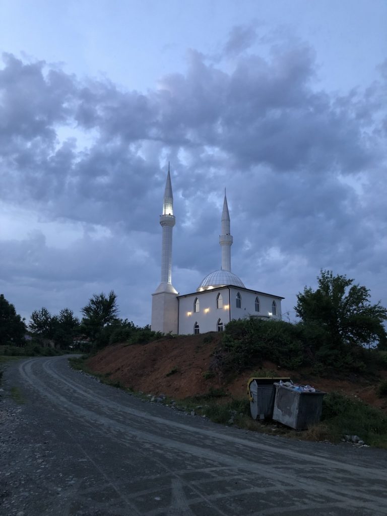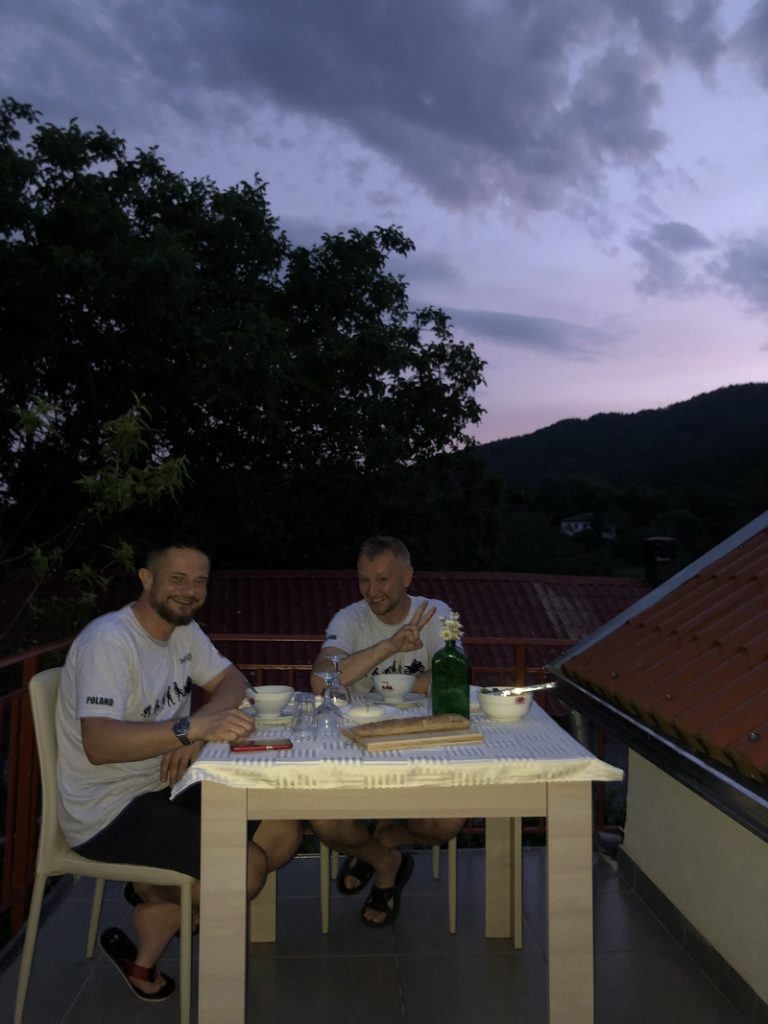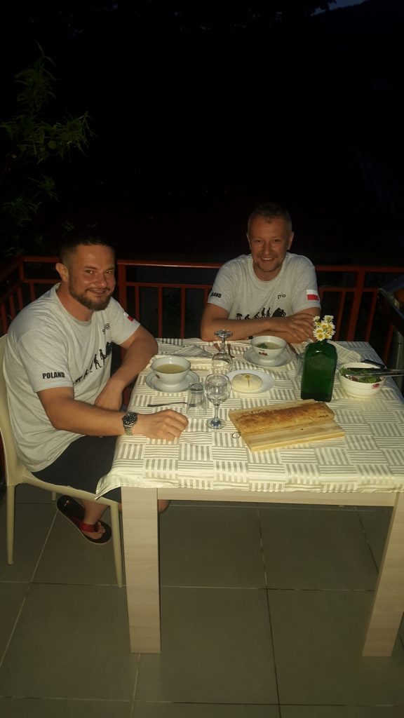 Udało mi się wypatrzeć przy drodze jakąś tabliczkę z napisem przypominającym agroturystykę i pojechaliśmy tam za znakami nowiutką droga – nowa bo prowadziła wprost do meczetu. A agroturystyka była po drugiej stronie ulicy. I to był nasz nocleg. We wsi około 40 domów, brak internetu, tylko cztery auta. Właścicielka powiedziała, że jak potrzebuje internet to idzie do miasteczka bo to blisko tylko 7km ;-). Przygotowano nam nawet klimatyczny stolik na tarasie z lokalnym jedzeniem. Niestety Darek skusił się na lokalne wino…przeprosiłem właścicielkę i powiedziałem, że nie dam rady tego pić ale ma Whisky, które będzie lepiej pasowało do podanego jedzenia 🙂