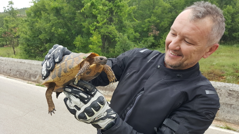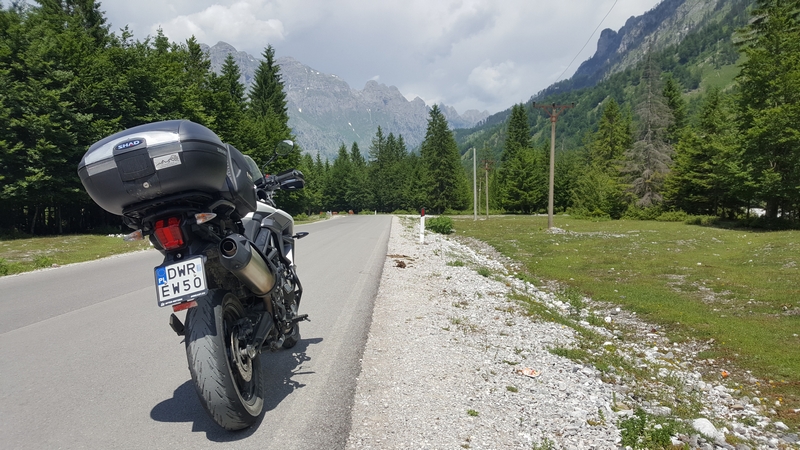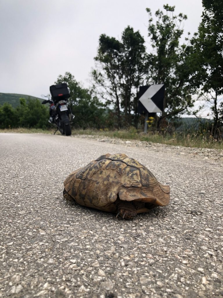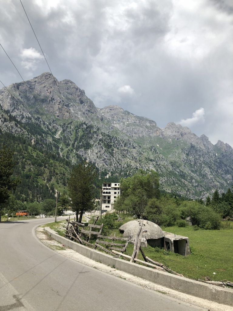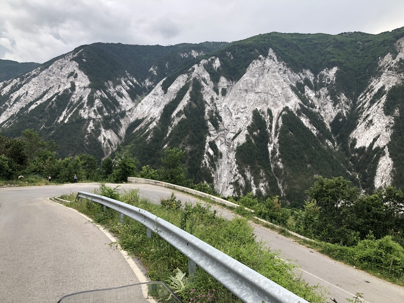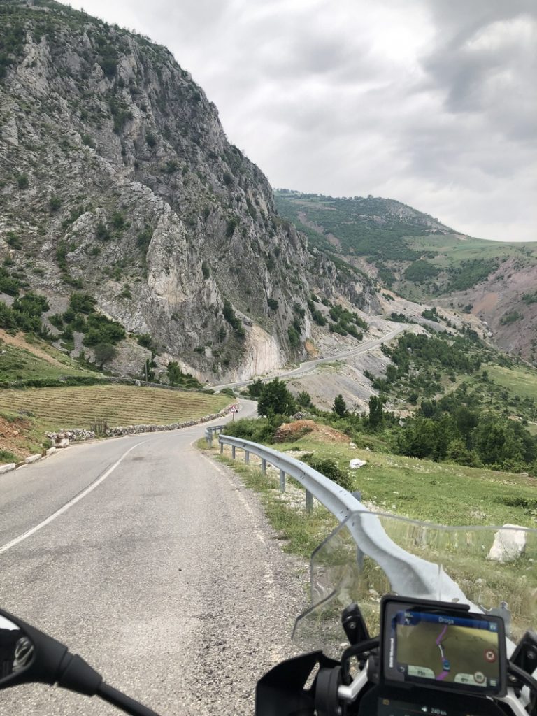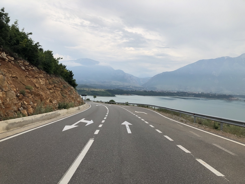 Jedziemy tam gdzie miał zawieść nas prom, drogami o różnej jakości nawierzchni ale to taki albański standard. Trochę spędzamy czasu osobno bo jakoś wieczorne jedzenie i lokalne wino zaszkodziło Darkowi i miał częste postoje 😉