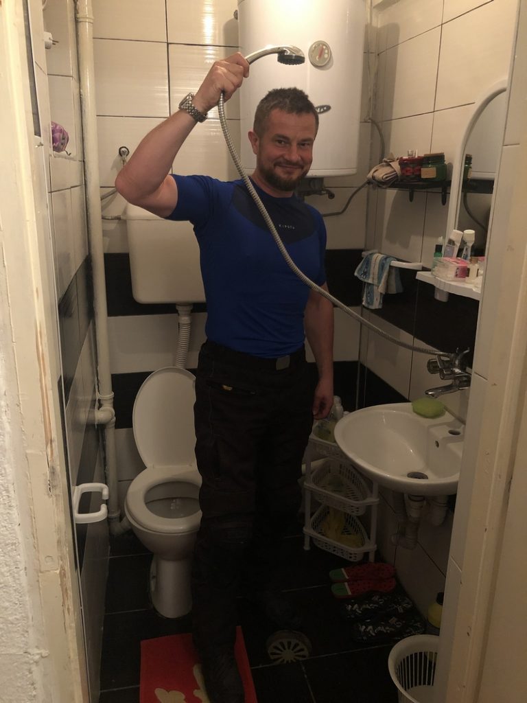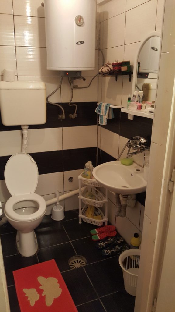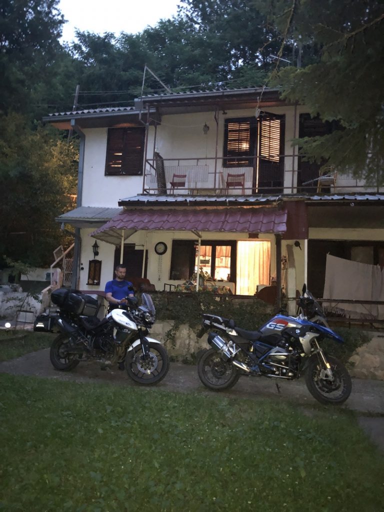 W Macedonii szału z ilością noclegów na Booking nie było w tej okolicy ale udało nam się namierzyć jakieś lokum – do którego pasowało określenie “Straszny dom V”. Zostaliśmy, a właścicielka powiedziała, że Nas zaskoczy macedońskim śniadaniem. Atrakcje strasznego domu były jeszcze przed nami. Pani podkreśliła kilka razy – wyłączcie boiler jak się nagrzeje woda. No zapomnieliśmy – przypomniała nam o tym słuchawka prysznica, która miała przebicie – więc był prysznic z prądem. A lokal miał standard lat 70-tych 😉