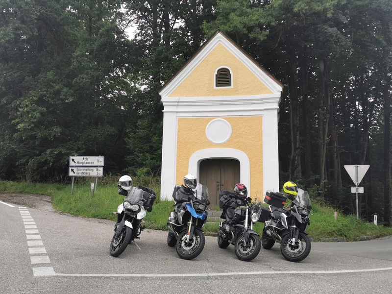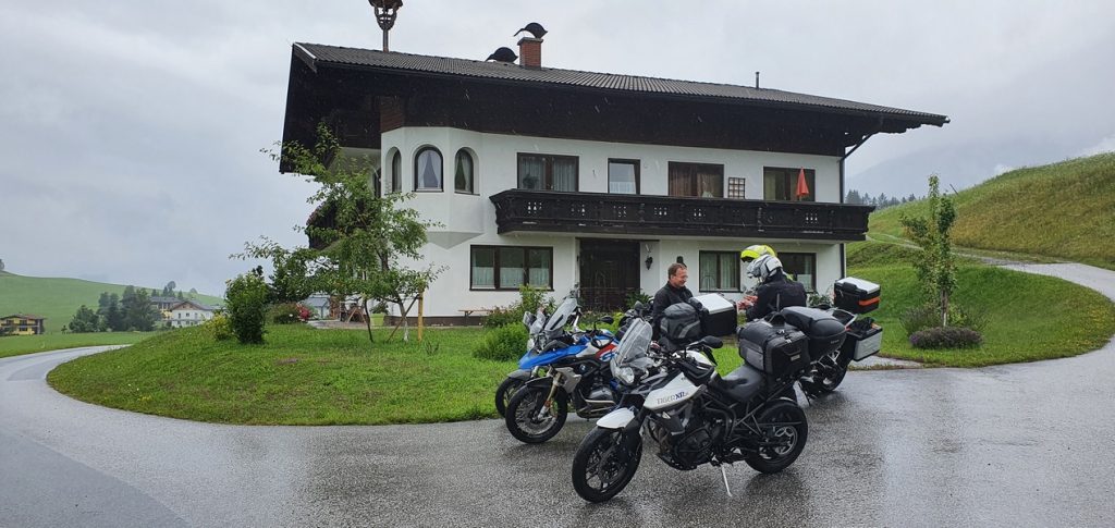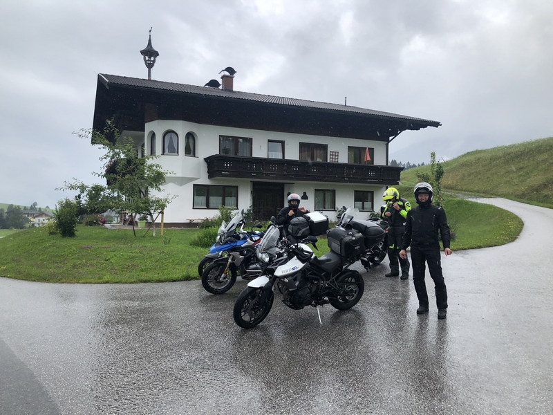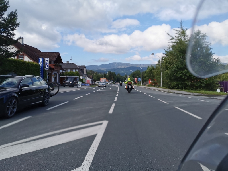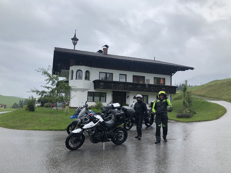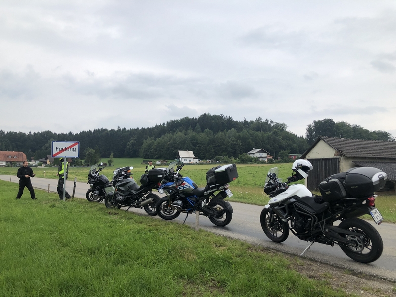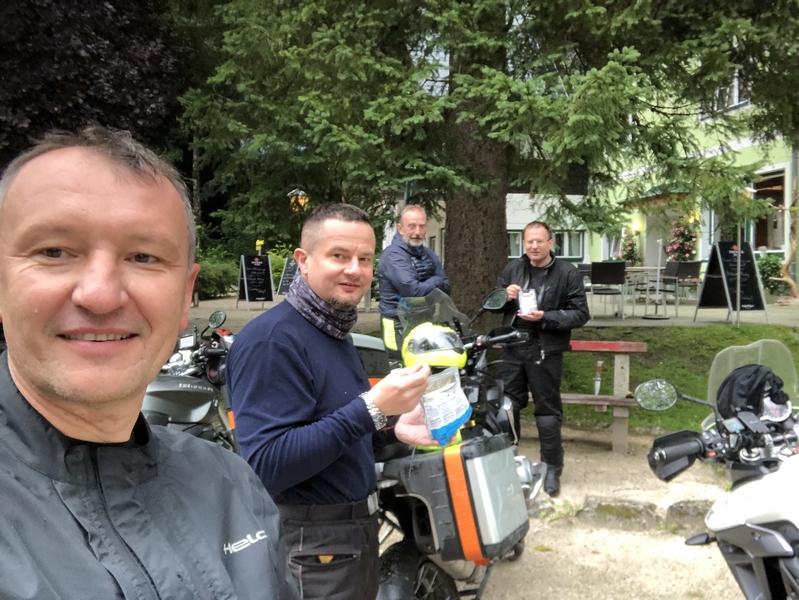 A po Fucking zaczęło padać momentami słabo ale przeważnie mocno i zaczęły się górskie wąski drogi. Chyba ta część dnia Darkowi dostarczyła dużo emocji bo ratował skołatane nerwy kolejnymi papierosami.