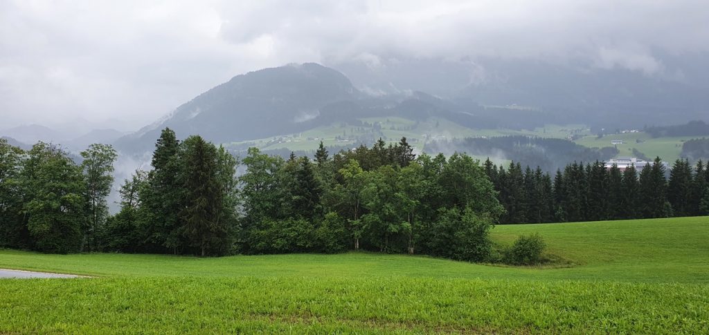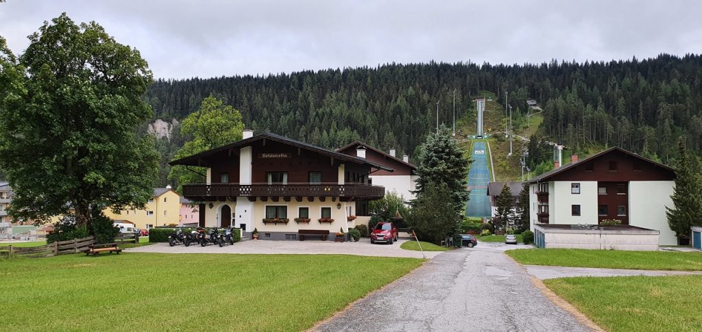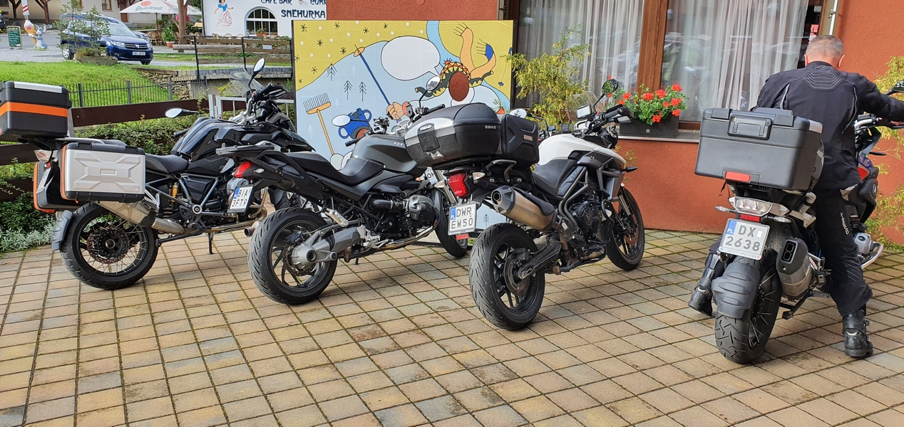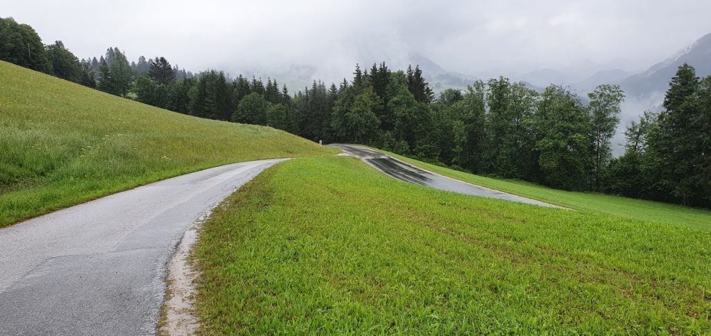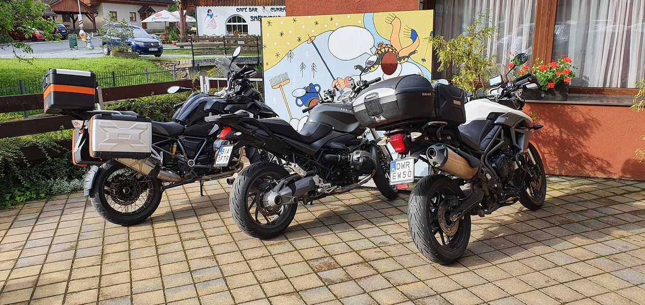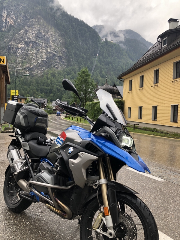 A po Fucking zaczęło padać momentami słabo ale przeważnie mocno i zaczęły się górskie wąski drogi. Chyba ta część dnia Darkowi dostarczyła dużo emocji bo ratował skołatane nerwy kolejnymi papierosami.