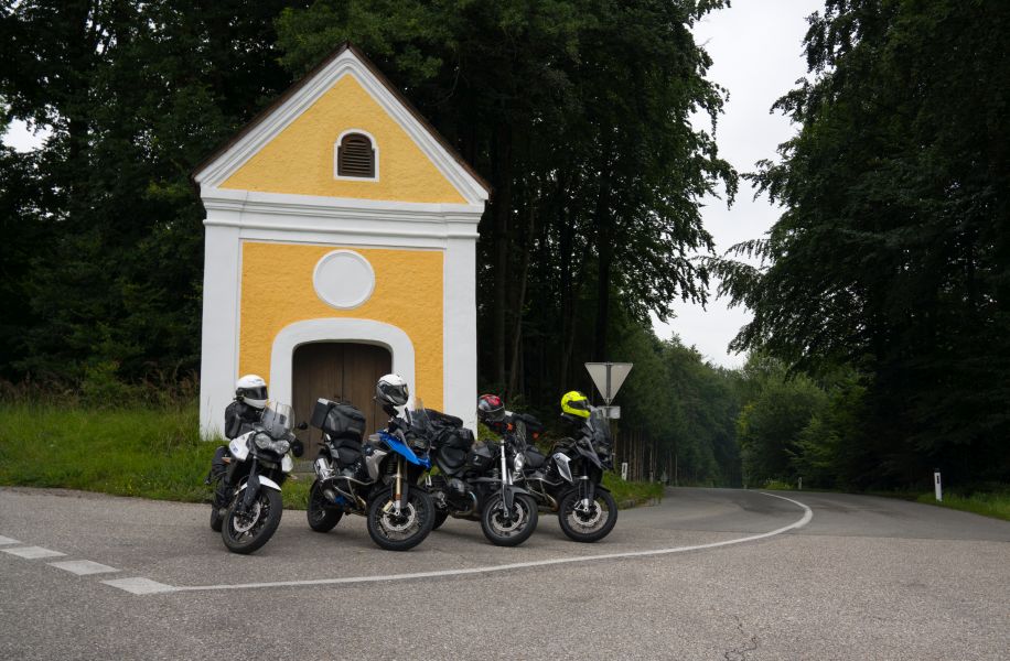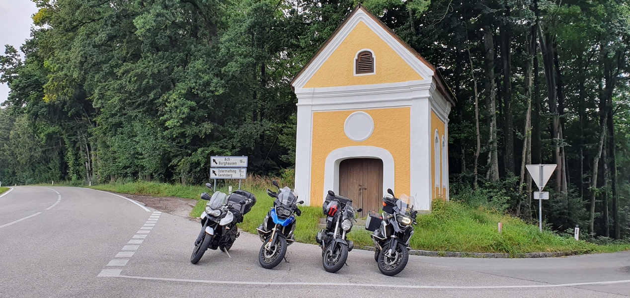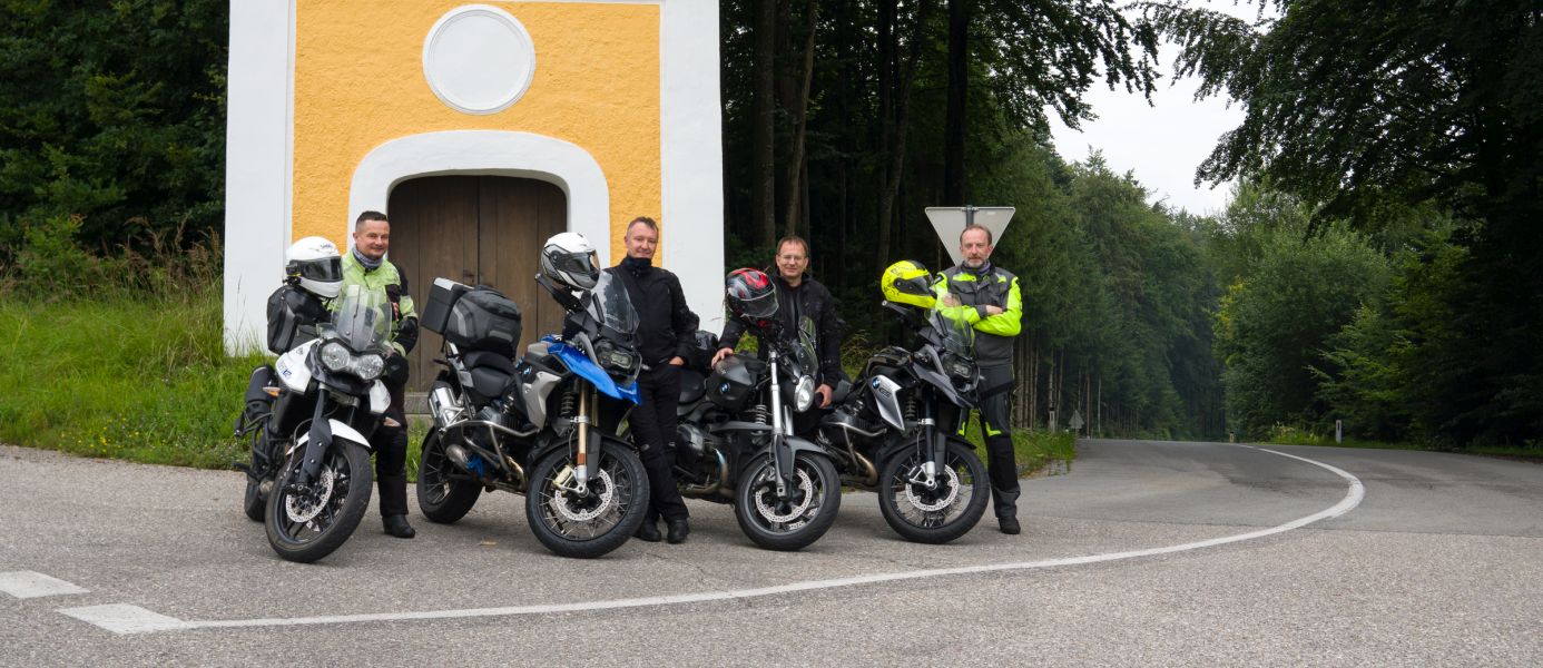Na jednym zakrecie pojawiła się malownicza kapliczka i Darek postanowił zrobić mega fotę. Jak już nas poustawiał to zorientowaliśmy się, że trochę zajęliśmy pas ruchu ;-). Ale nawet kierowcy z uśmiechem reagowali na tę fanaberię, a chwilę tam staliśmy…