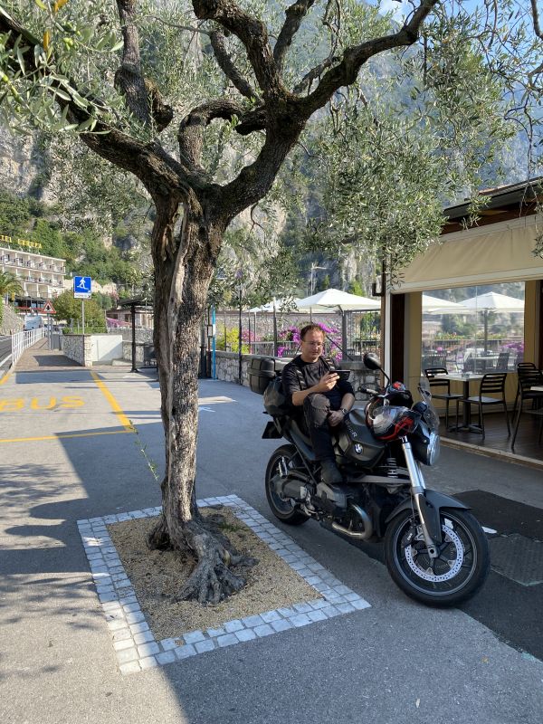 Dzisiaj Darek musiał już wracać do domu w związku z tym Wojtek postanowił wstać z nim o 5:00 i pojechac razem nad garde i tam poczekać na Nas. Jak My siadaliśmy do śniadania to oni juz pili kawę nad Gardą. Dzień zapowiadał się na piękny.