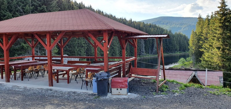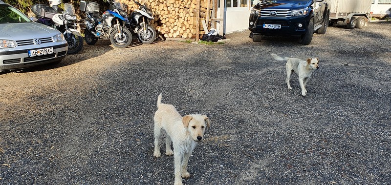 Zdecydowaliśmy się tego dnia nie wjeżdżać na Transalpinę tylko spać tuż przed nią. Nazajutrz się okaże, że jednak trzeba było ją pokonać tego dnia. Znajdujemy pensjonat nad jeziorem. Jak to w Rumunii psy wszedzie 😉