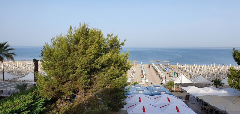Dzisiaj zaczynamy powrót do domu bo przed nami 1800km, które chcemy zrobić w dwa dni. Plan mamy taki, żeby nocować w Chorwacji w znanym nam pensjonacie w mieście Osijek. Przed nami Kawałek Albanii, Czarnogóra, BiH i Chorwacja. Jest piekielnie gorąco i pierwsze 150km przez Albanie idzie słabo.Przed wyjazdem jeszcze pyszna kawa nad morzem.