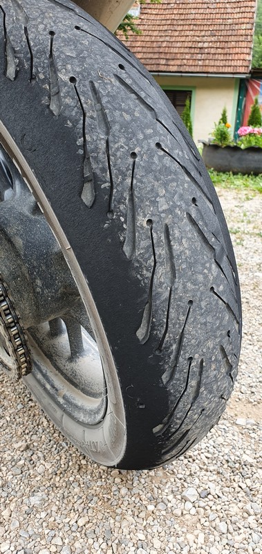 Nieśmiałe looknięcie na opone – musi jeszcze wytrzymać 1200km 😉