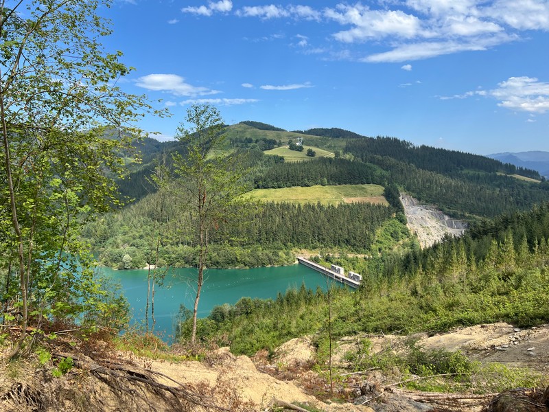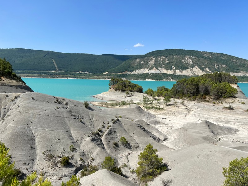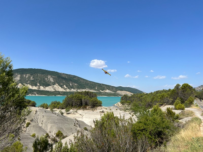 Malownicze jezioro, z którego samoloty pożarnicze tankowały wodę.