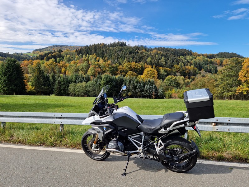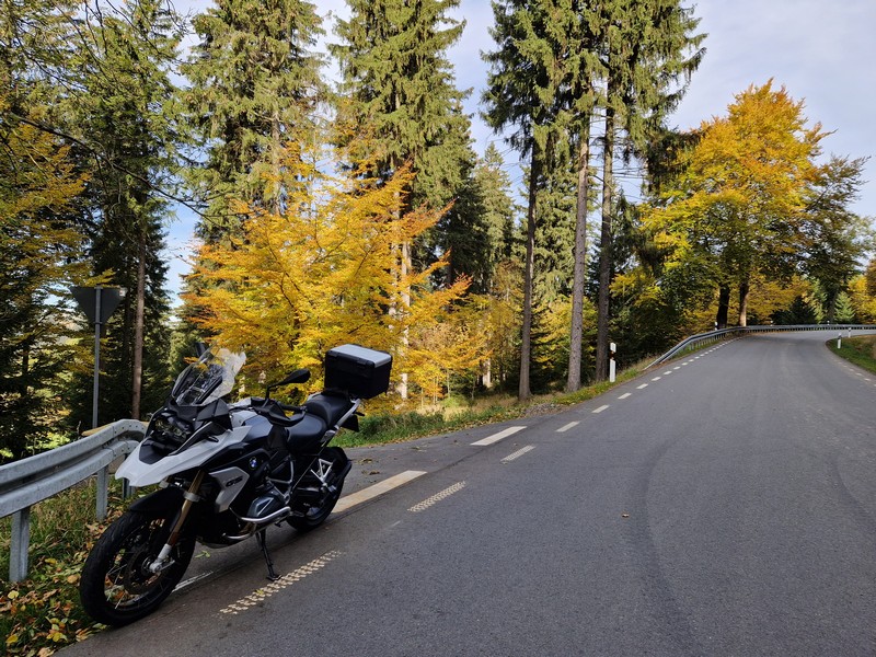 20221010 Dzień 2 – 488km Pogranicze czesko – niemieckie Klinovec 1239 m.n.p.m Czechy Karlove Vary Zamek Loket Slavkovsky Les Marianske Lazne Niemcy Cheb Filmowe podsumowanie dnia Previous Day Next Day
