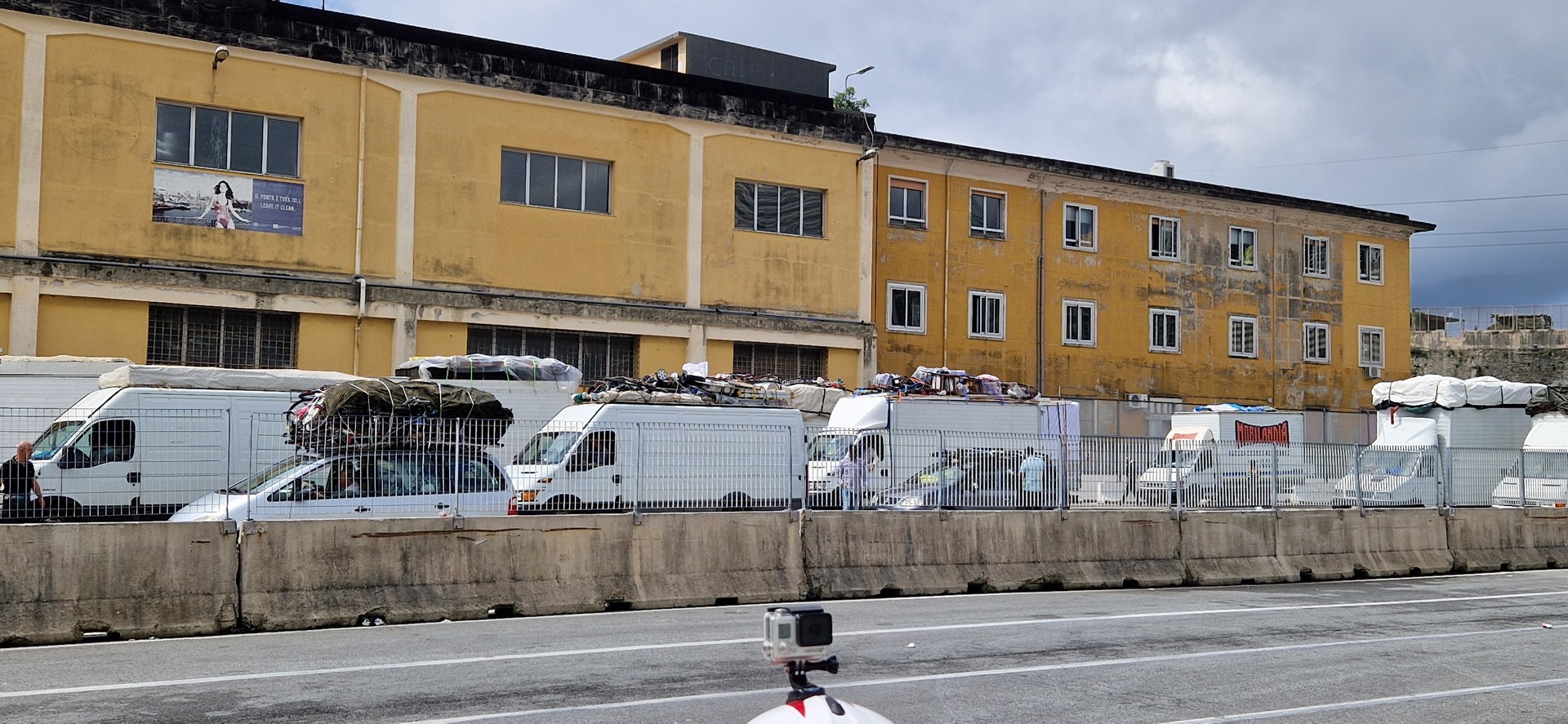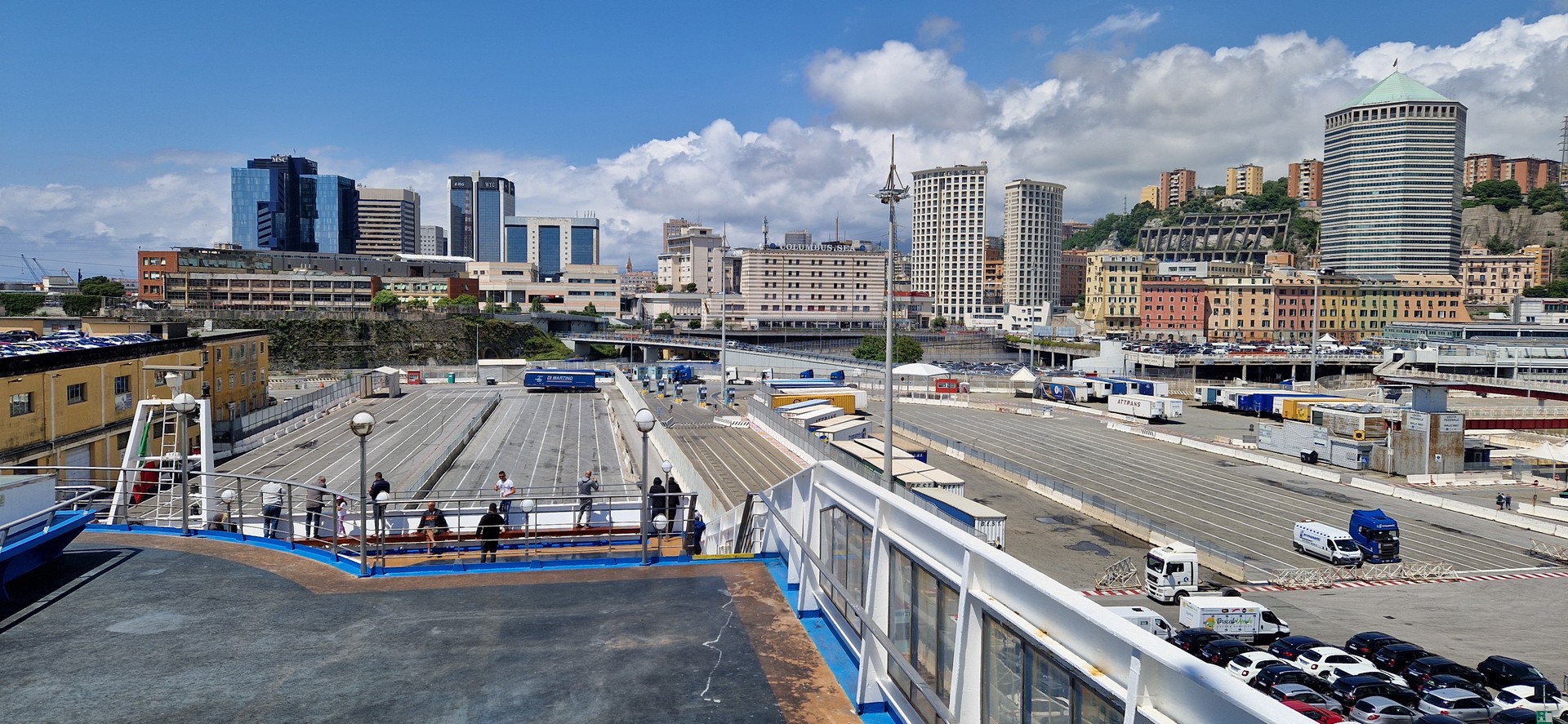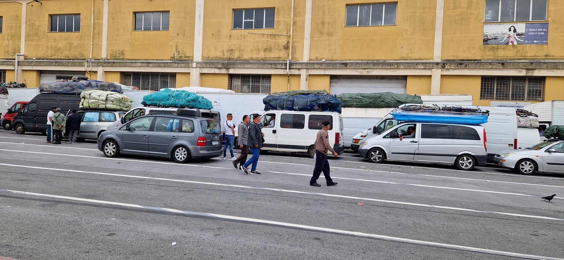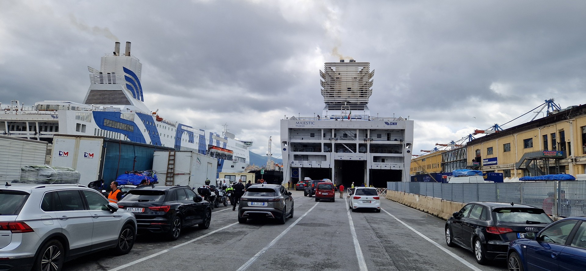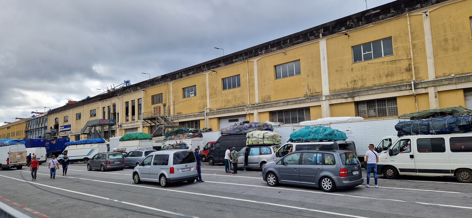 W porcie w Genua jak zwykle przy zakupie biletów był kabaret. Dopiero za trzecim razem kasjerka wyklikała i wydrukowała poprawne bilety. A przed promem już trochę afrykańskich klimatów.