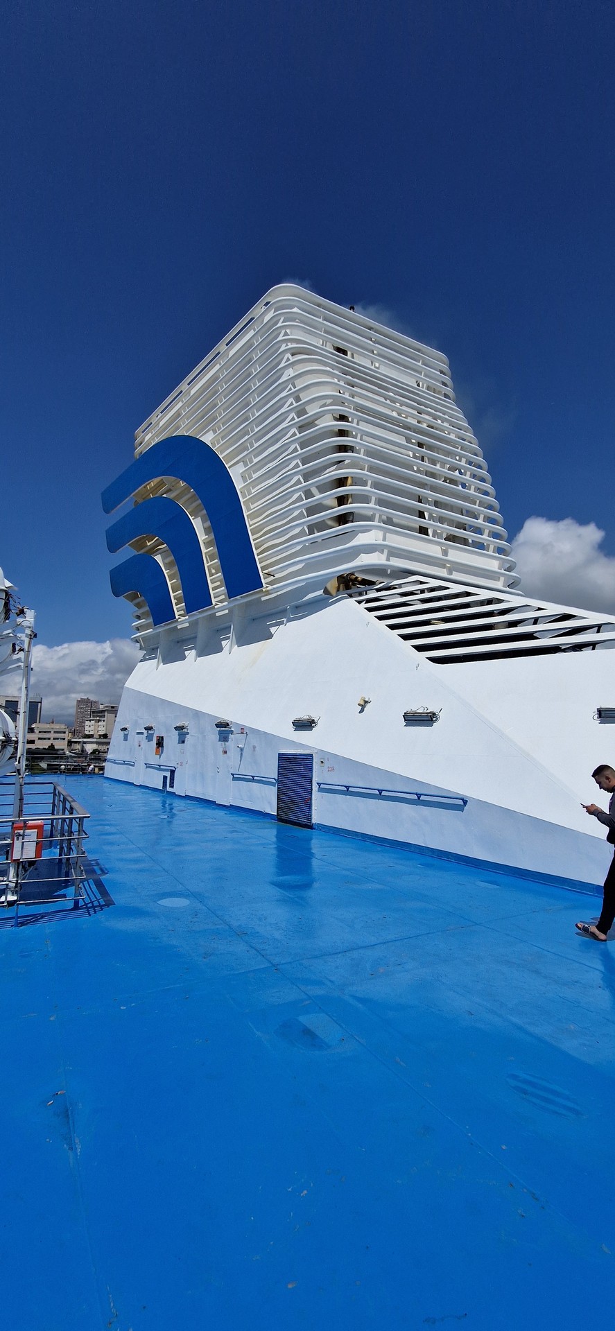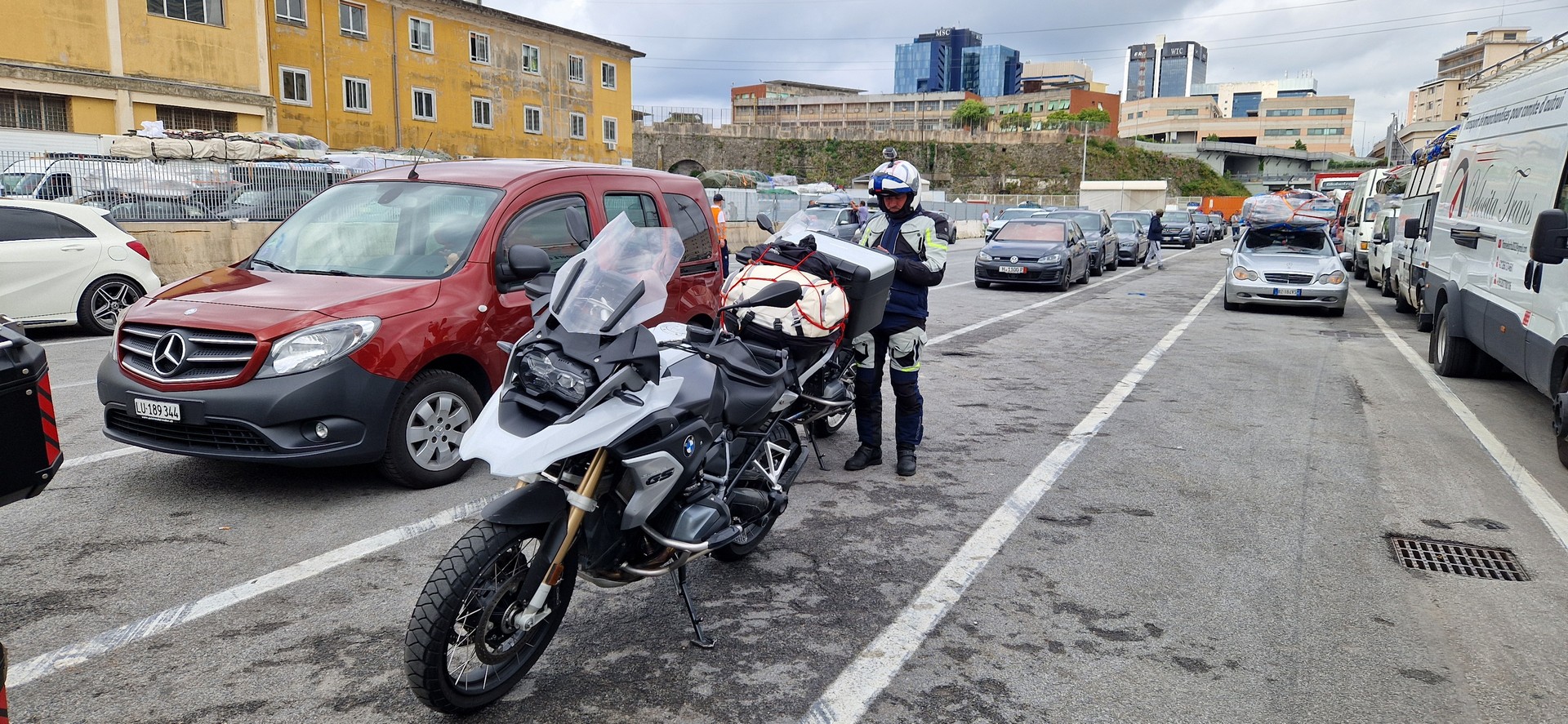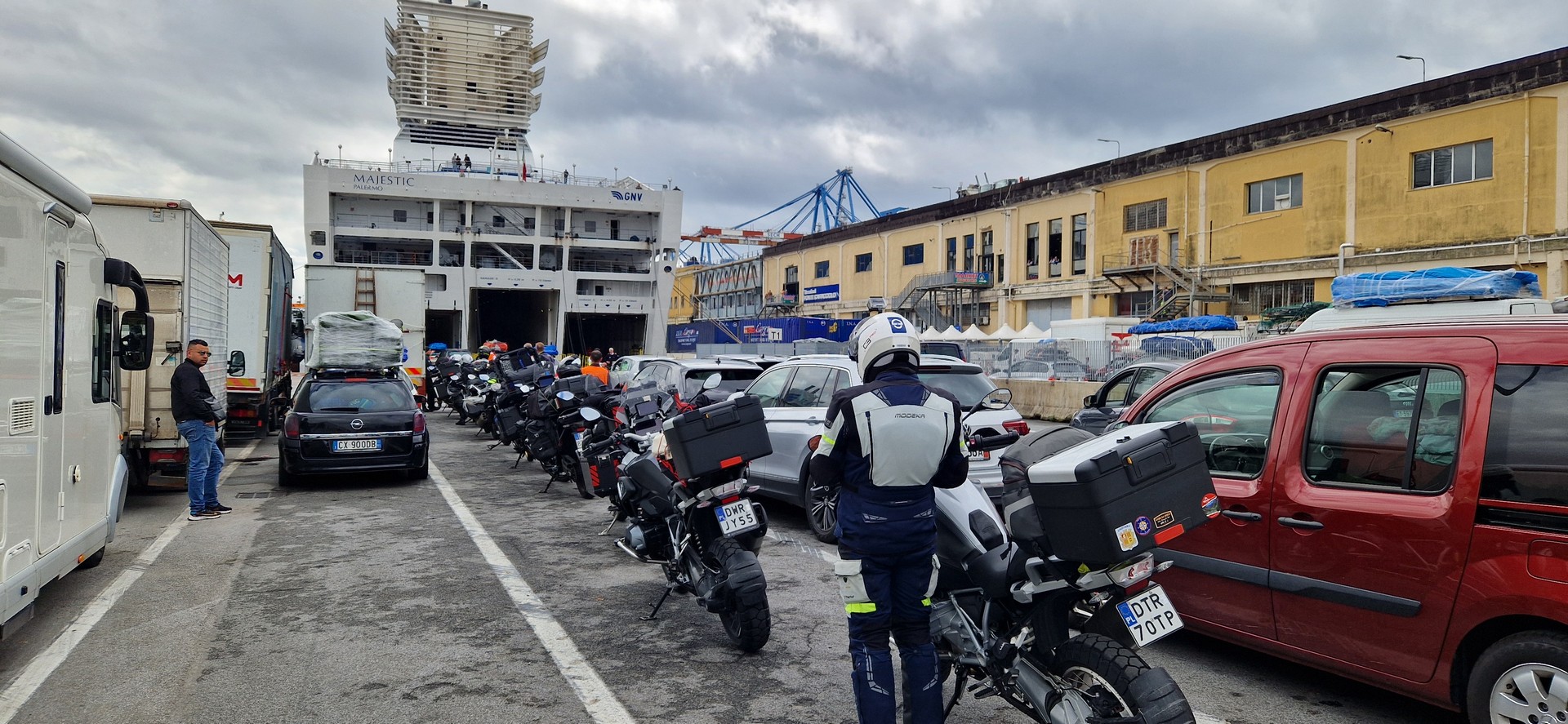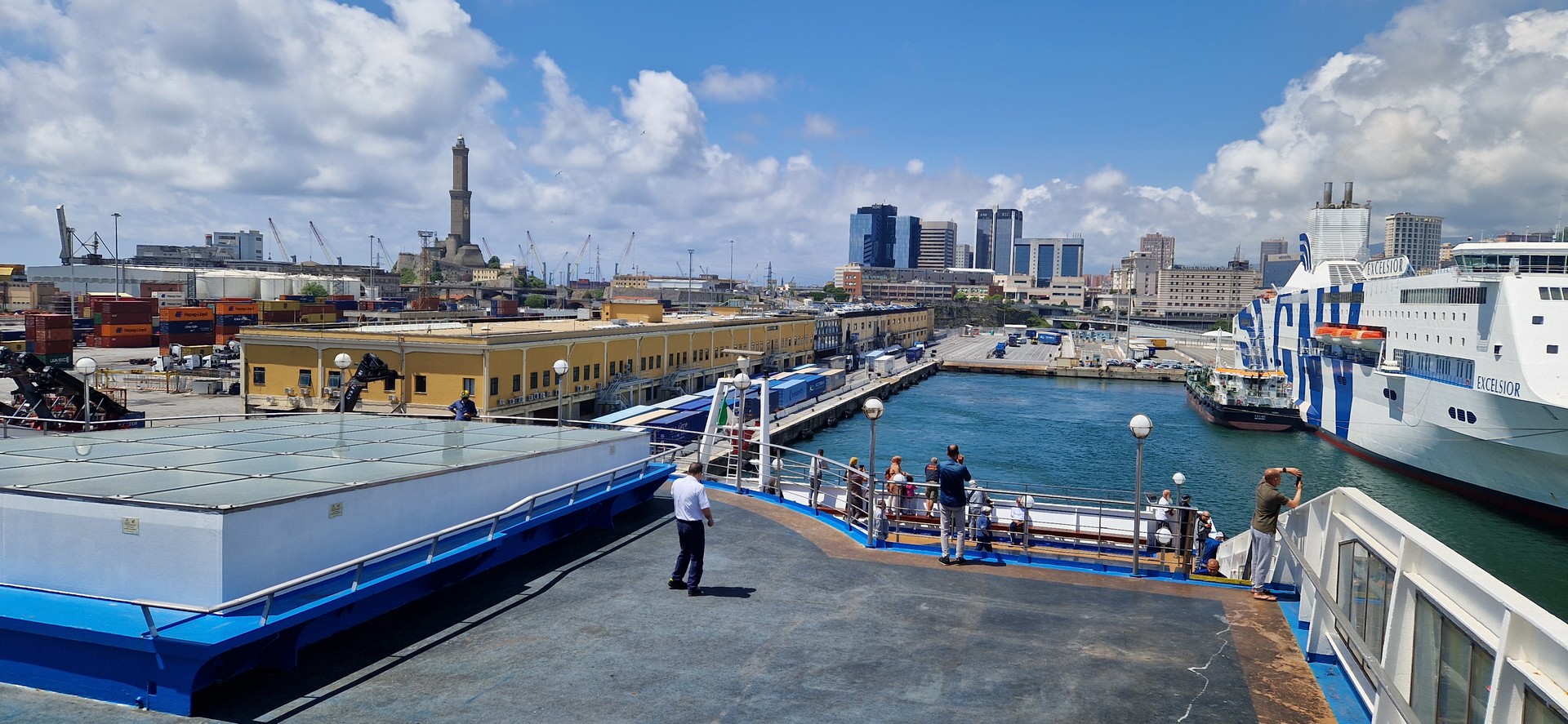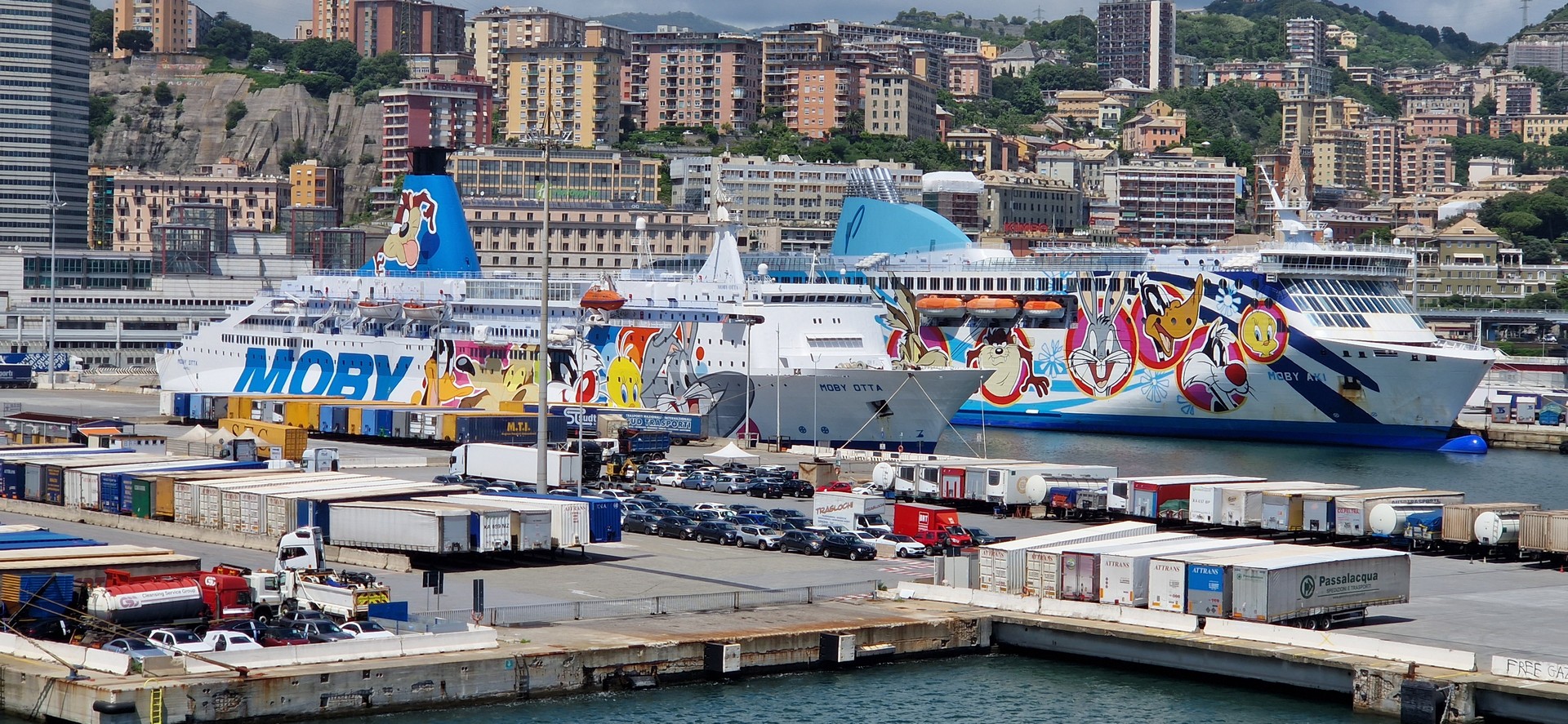 W porcie w Genua jak zwykle przy zakupie biletów był kabaret. Dopiero za trzecim razem kasjerka wyklikała i wydrukowała poprawne bilety. A przed promem już trochę afrykańskich klimatów.