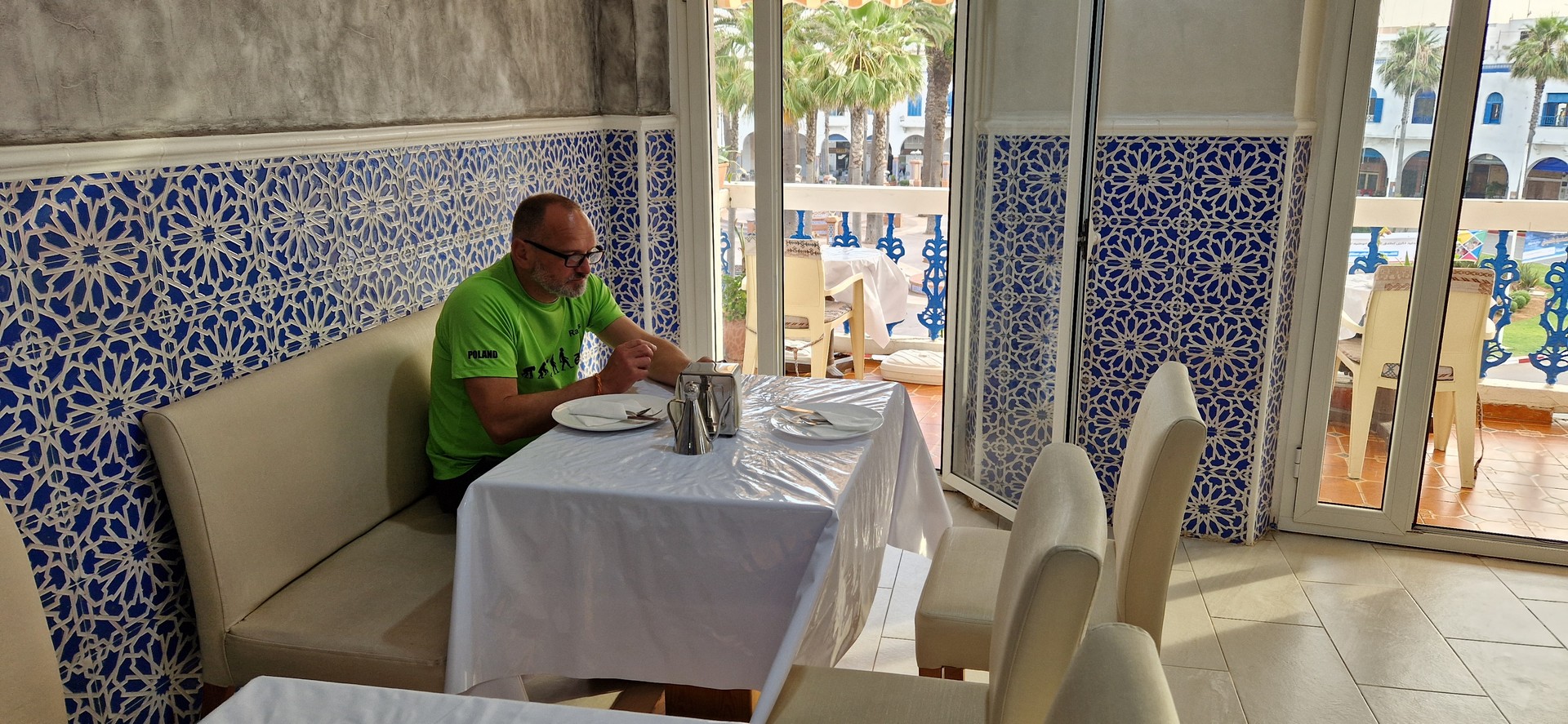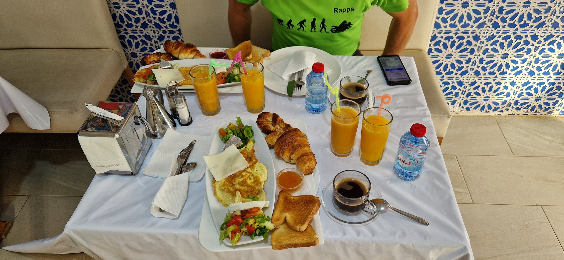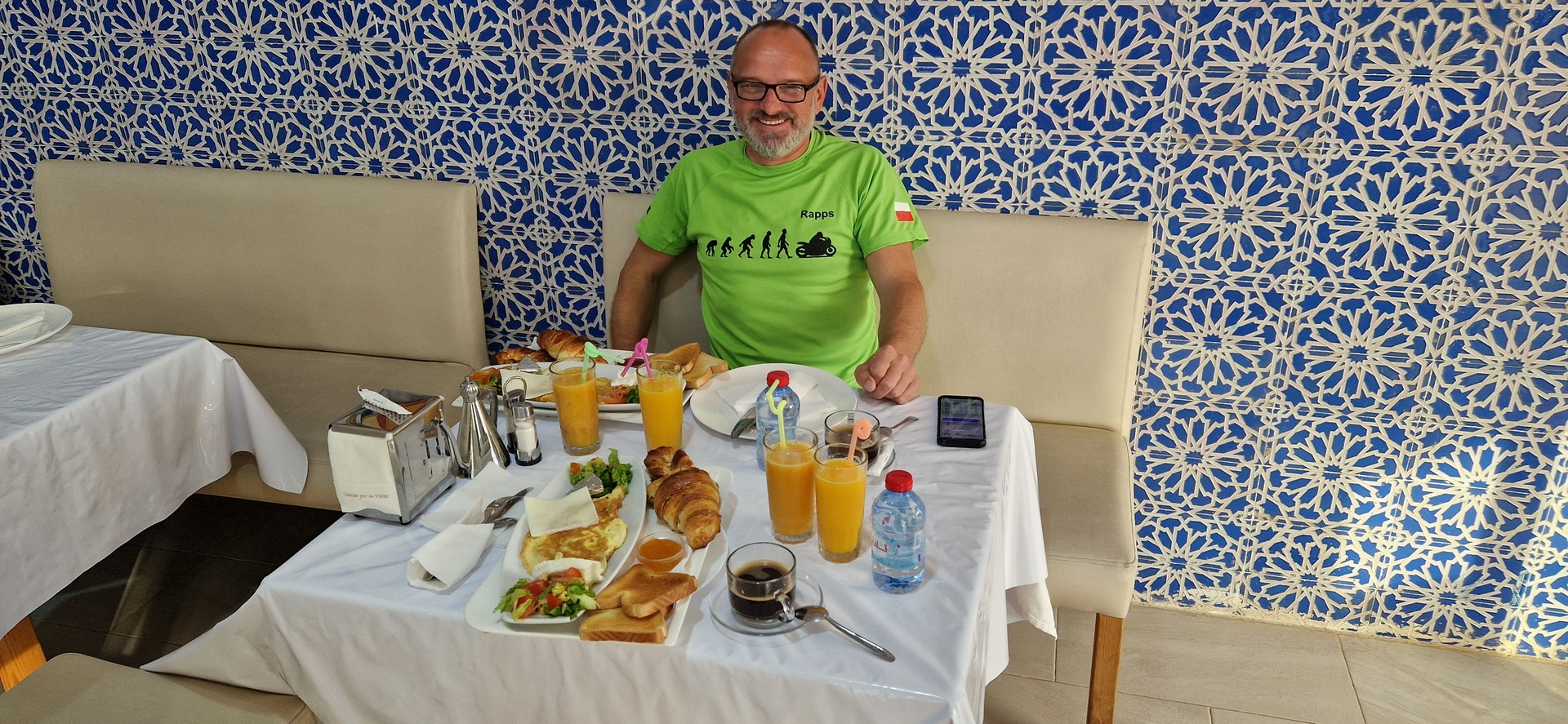 Pierwsza nasza pobudka w Afryce – niestety o 4 rano bo były modlitwy muzułmańskie. Dzień zaczęliśmy od bardzo dobrego śniadania w naszym hotelu.