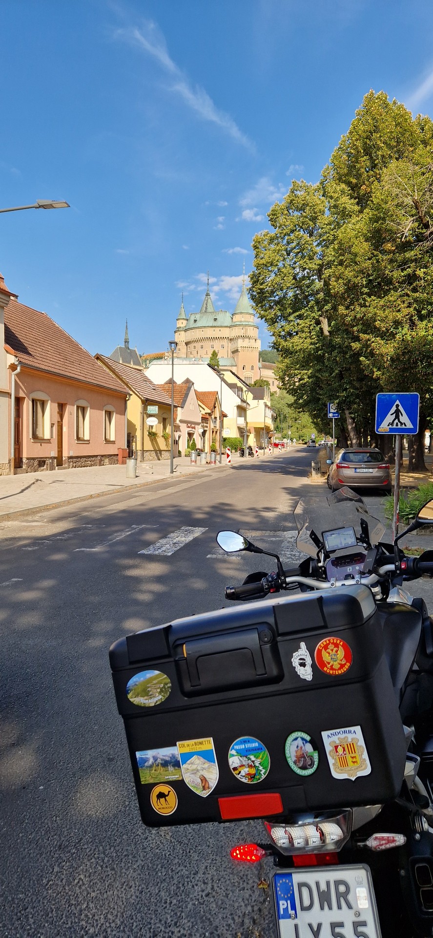 20240812 Dzień 4 – 528km Śniadanie po Słowacku Zamek w Bojnicach Ścieżka w chmurach w okolicach Bojnic Wieś Cicmany Manínska Tiesňava Zamek Hradec nad Moravicí Dom Previous Day First Day