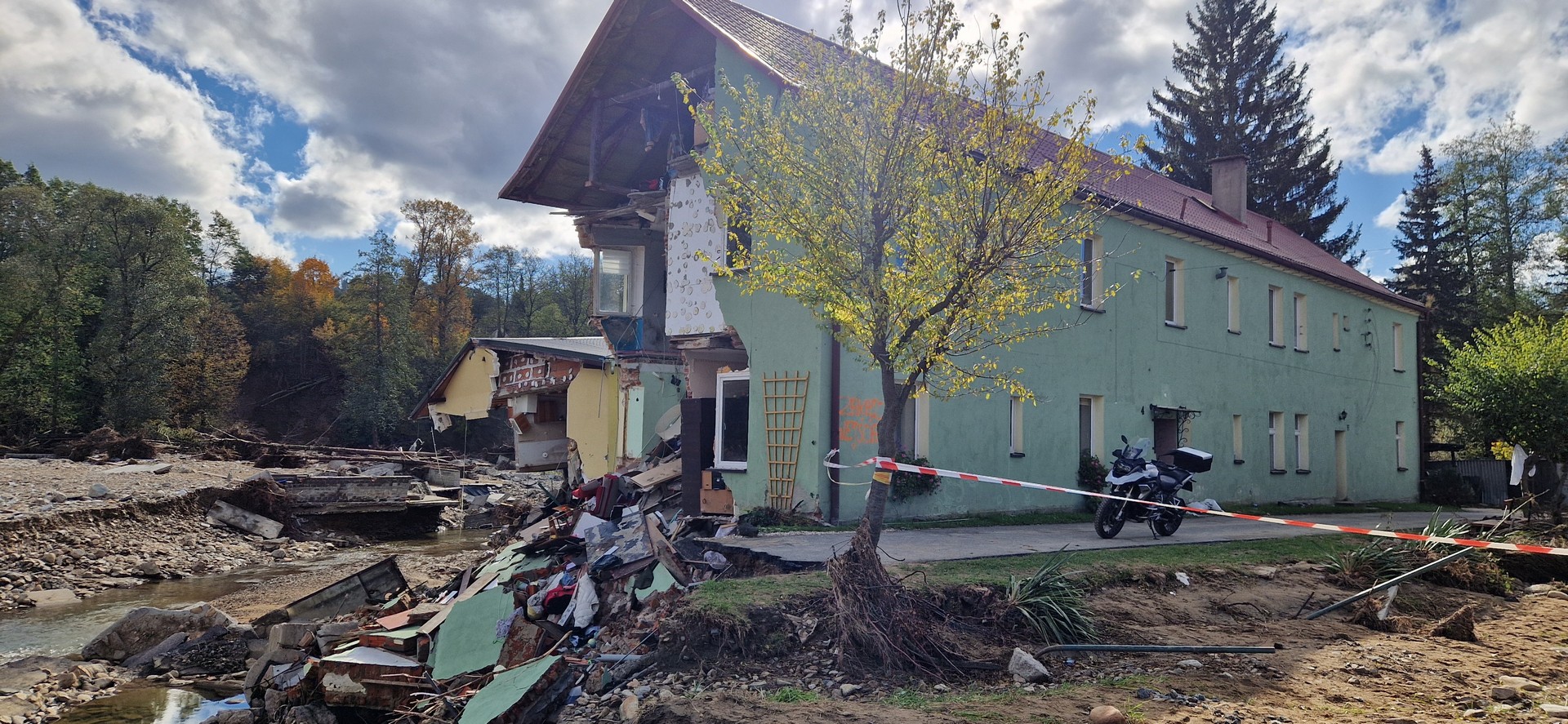 13.09.2024 powódź zaskoczyła mnie i znajomych w Bielicach nad rzeką Białą Łądecką w Chacie Cyborga. Spedziliśmy tam cztery dni czekając aż bedziemy w stanie się wydostać. Postanowiłem po miesiącu od tamtych wydarzeń odwiedzić te tereny.