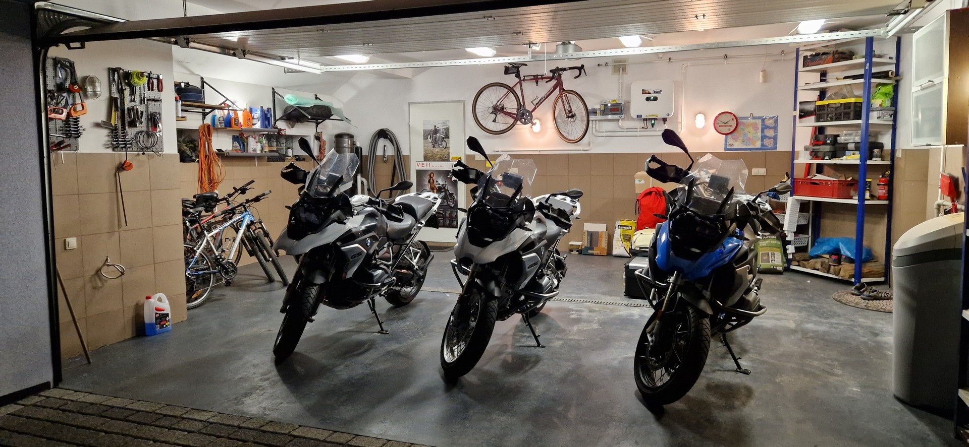 Chłopaki przywieźli swoje motocykle do mnie i zagęściło się w garażu.