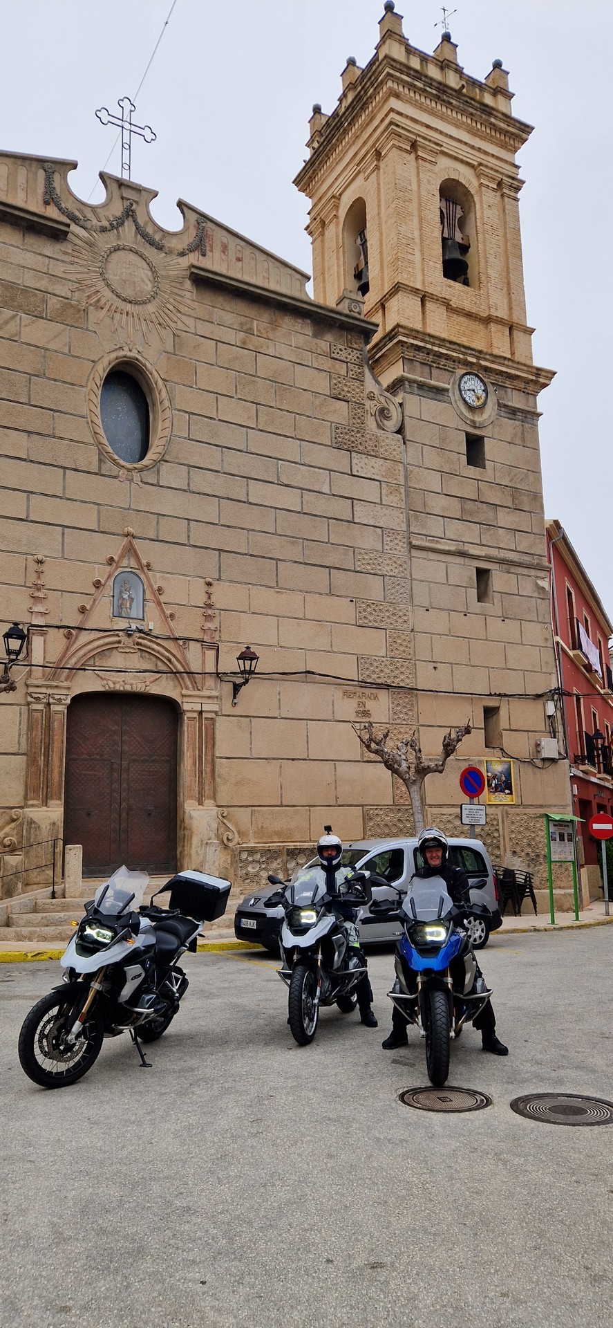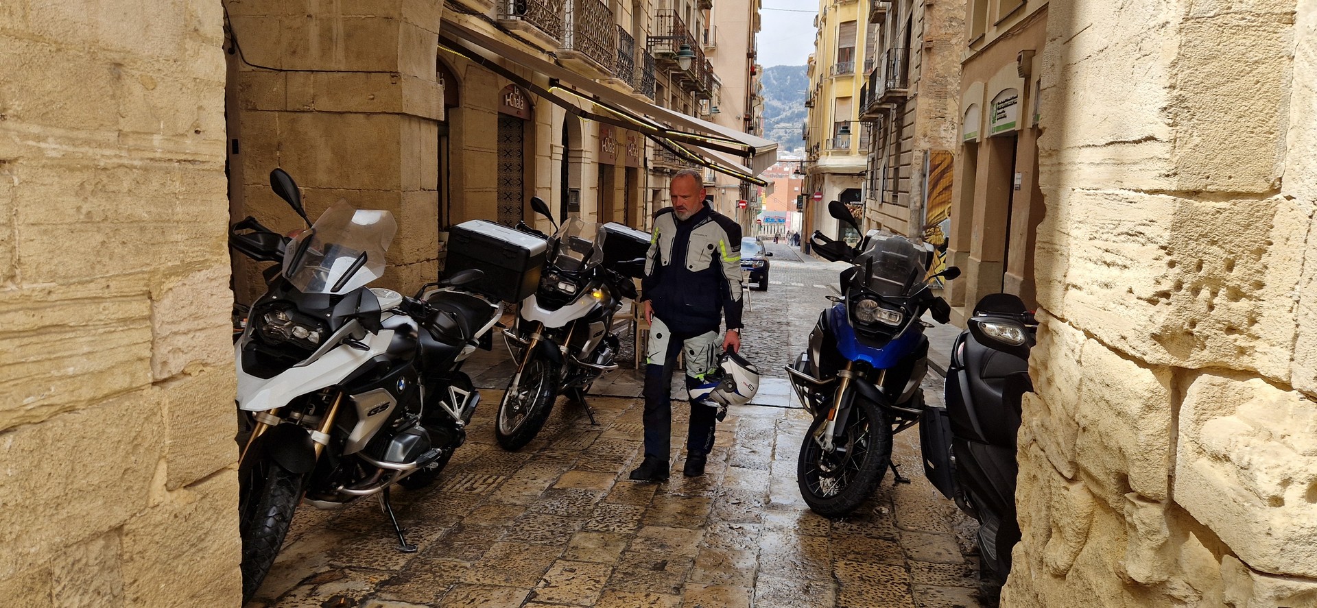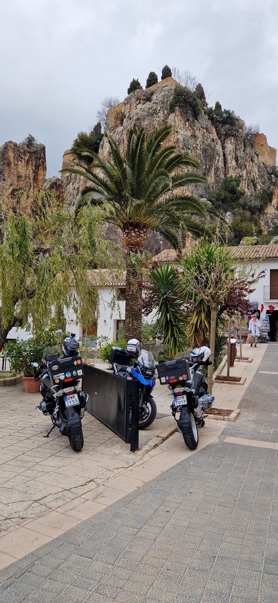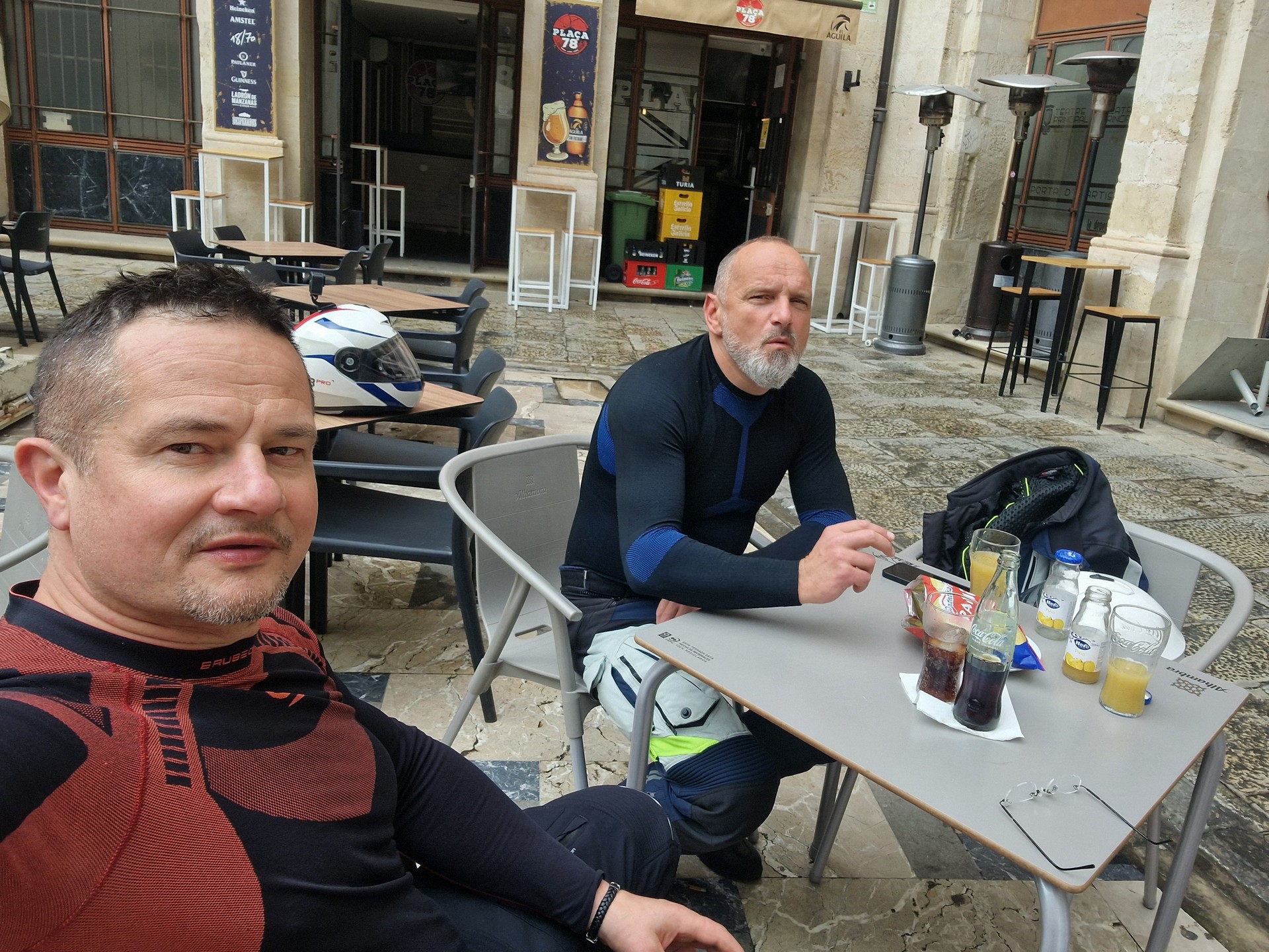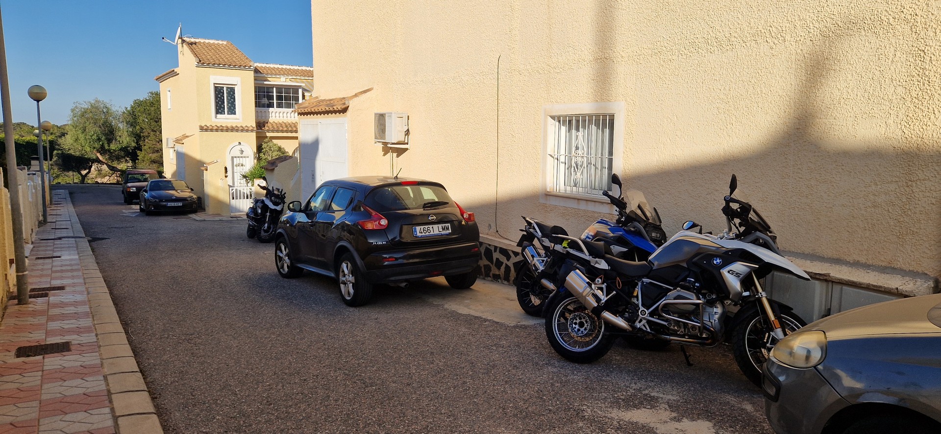 Poranek pogodny jednak temperatura mocno niehiszpańska ale słońce świeci, motocykle stoją wiec jest ok.