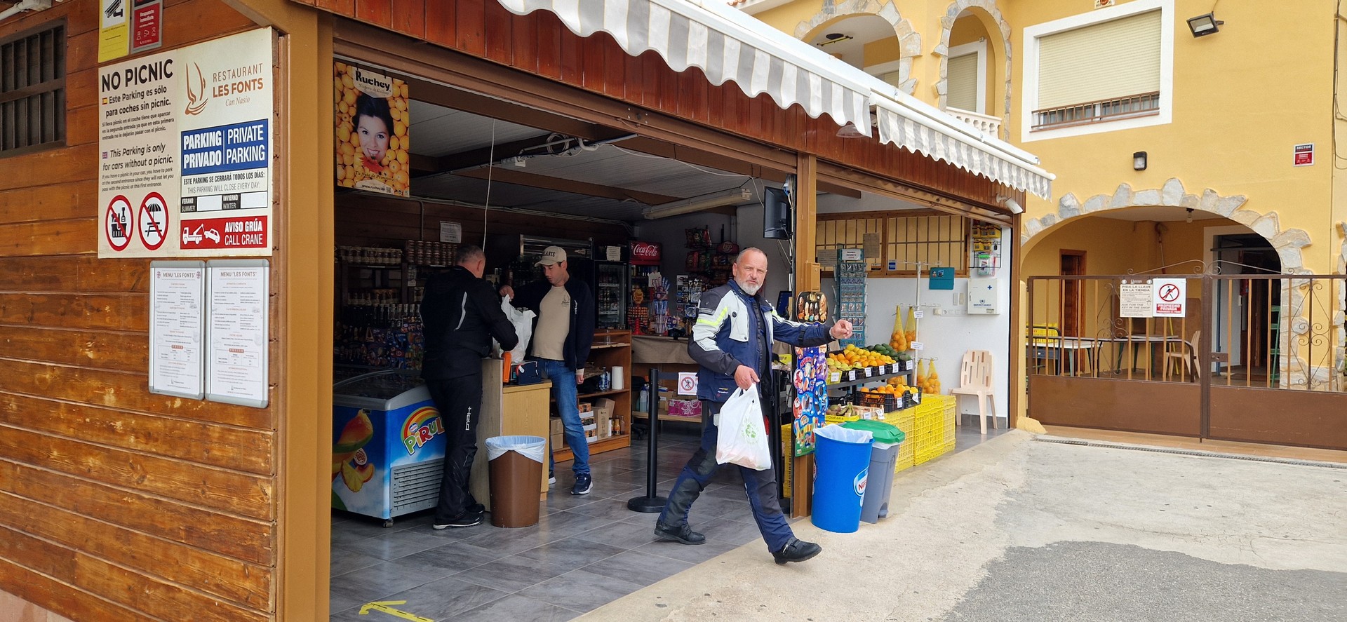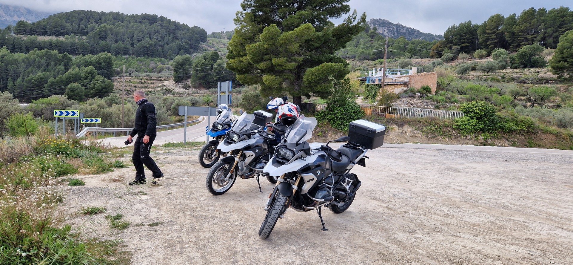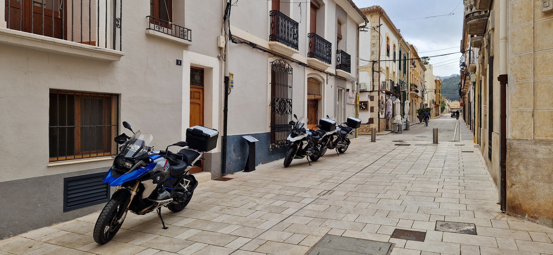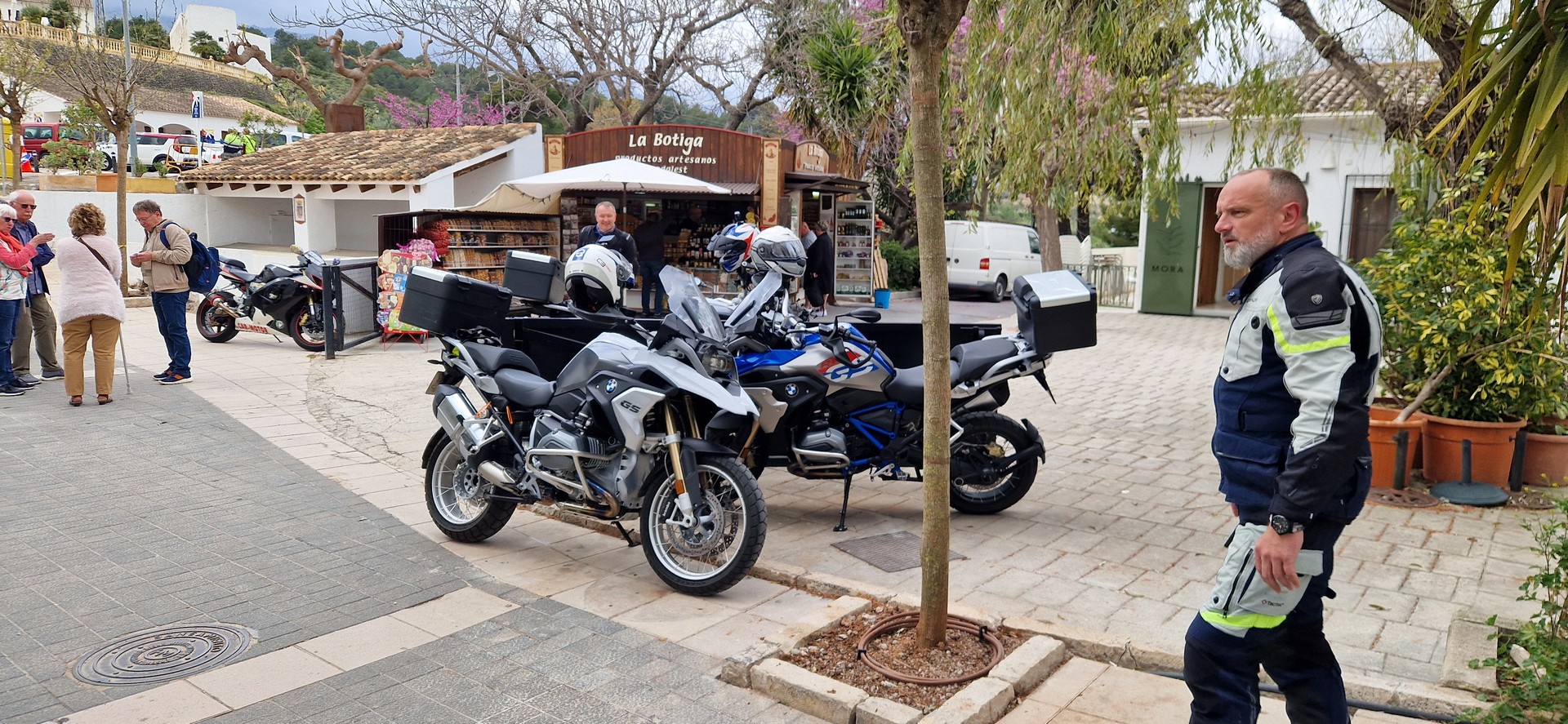Poranek pogodny jednak temperatura mocno niehiszpańska ale słońce świeci, motocykle stoją wiec jest ok.