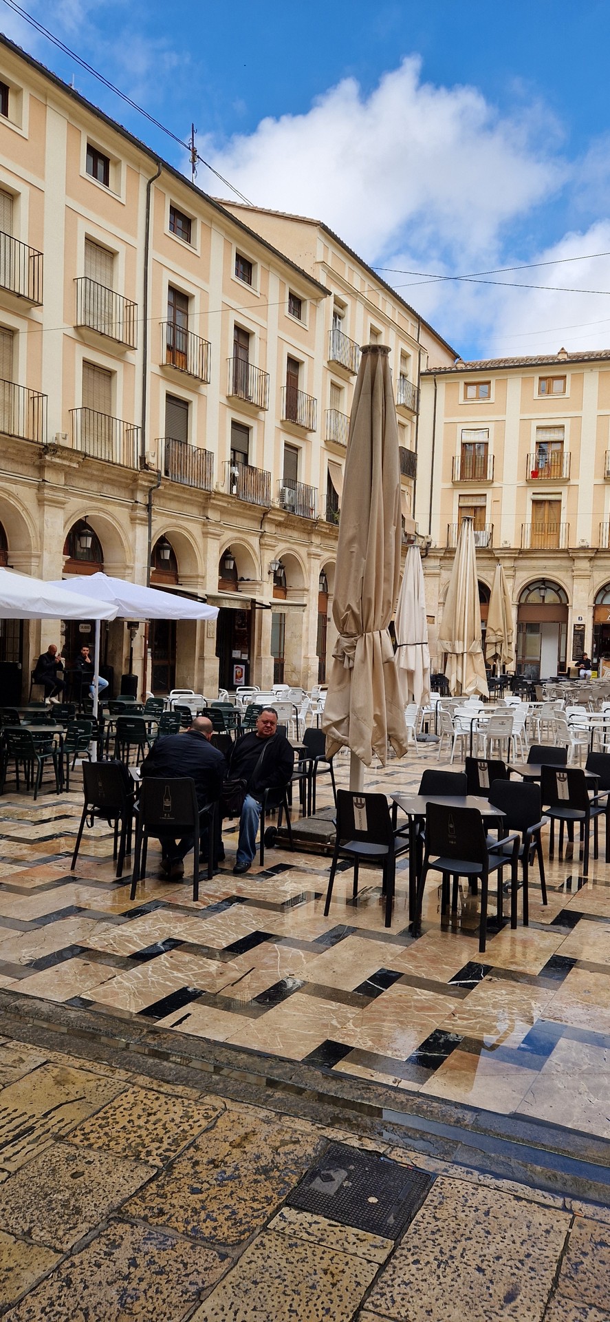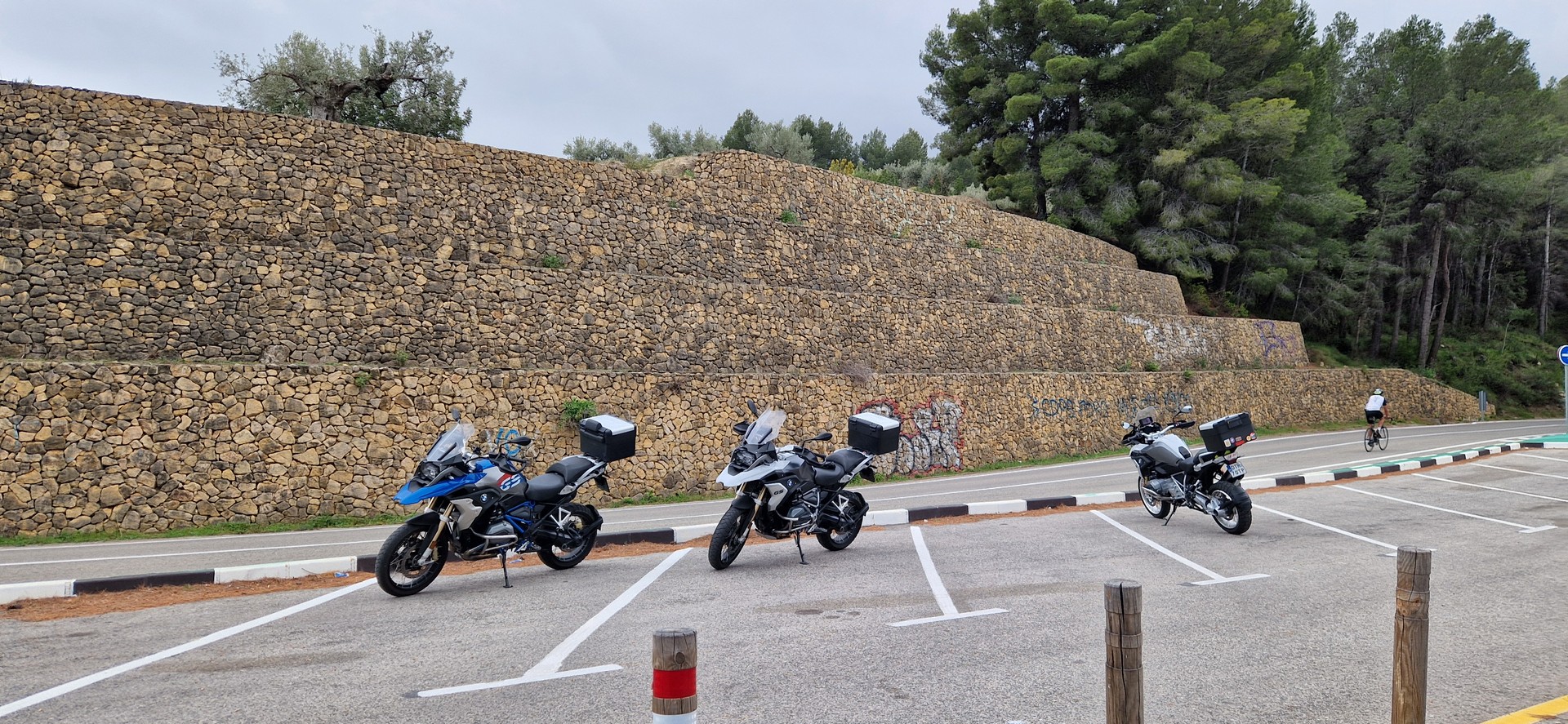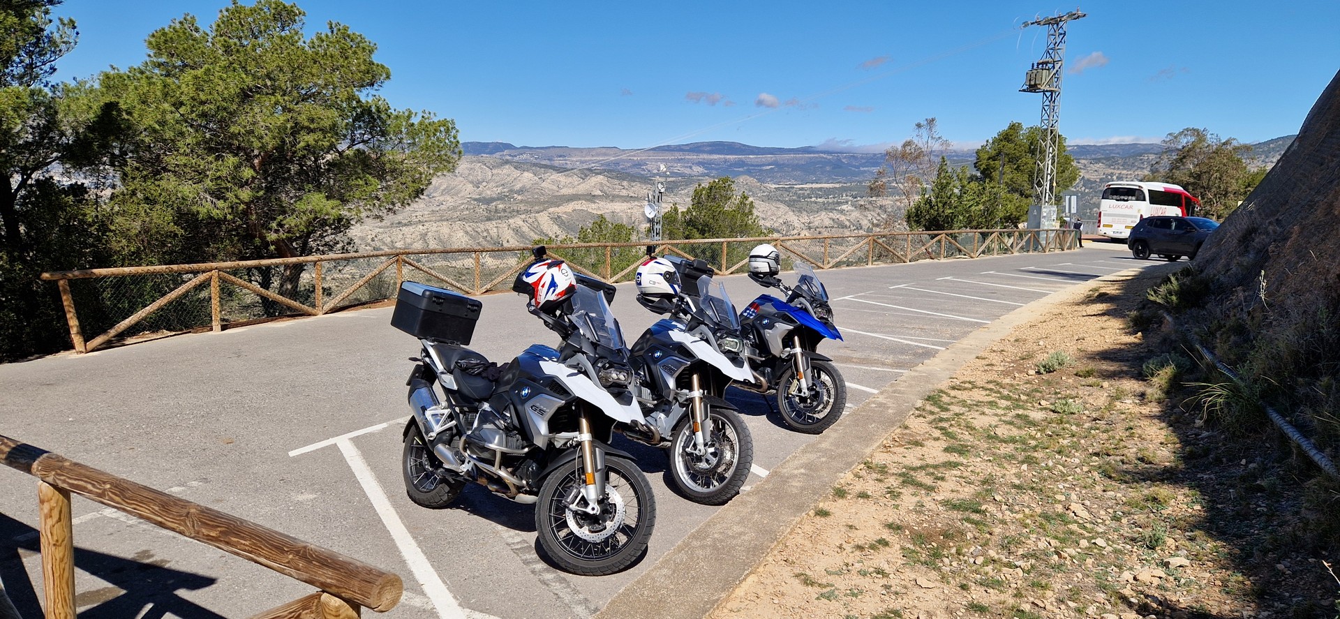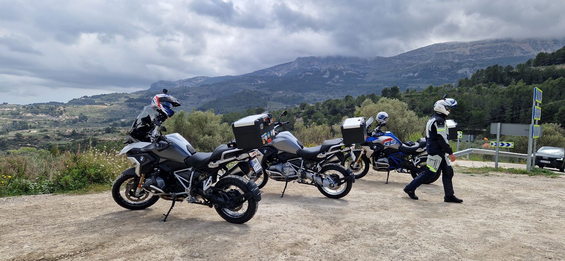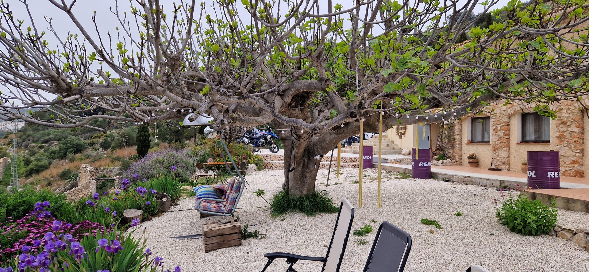 Poranek pogodny jednak temperatura mocno niehiszpańska ale słońce świeci, motocykle stoją wiec jest ok.