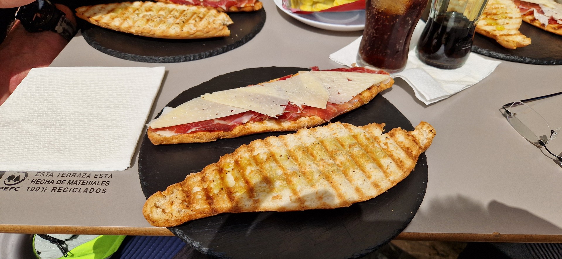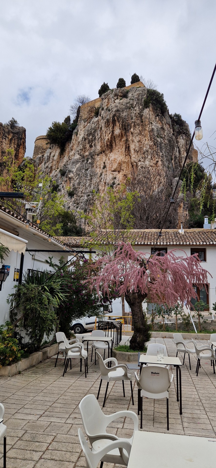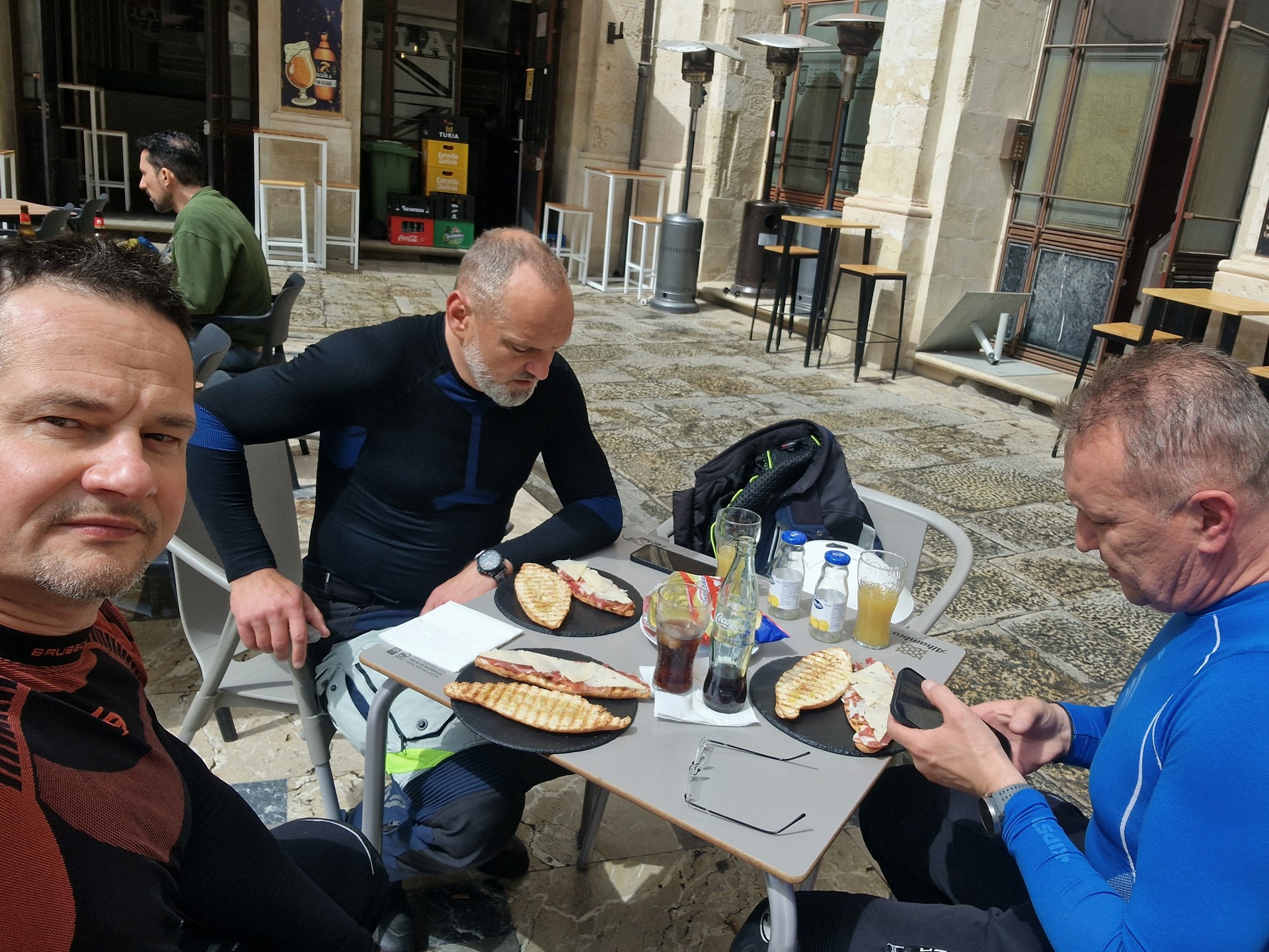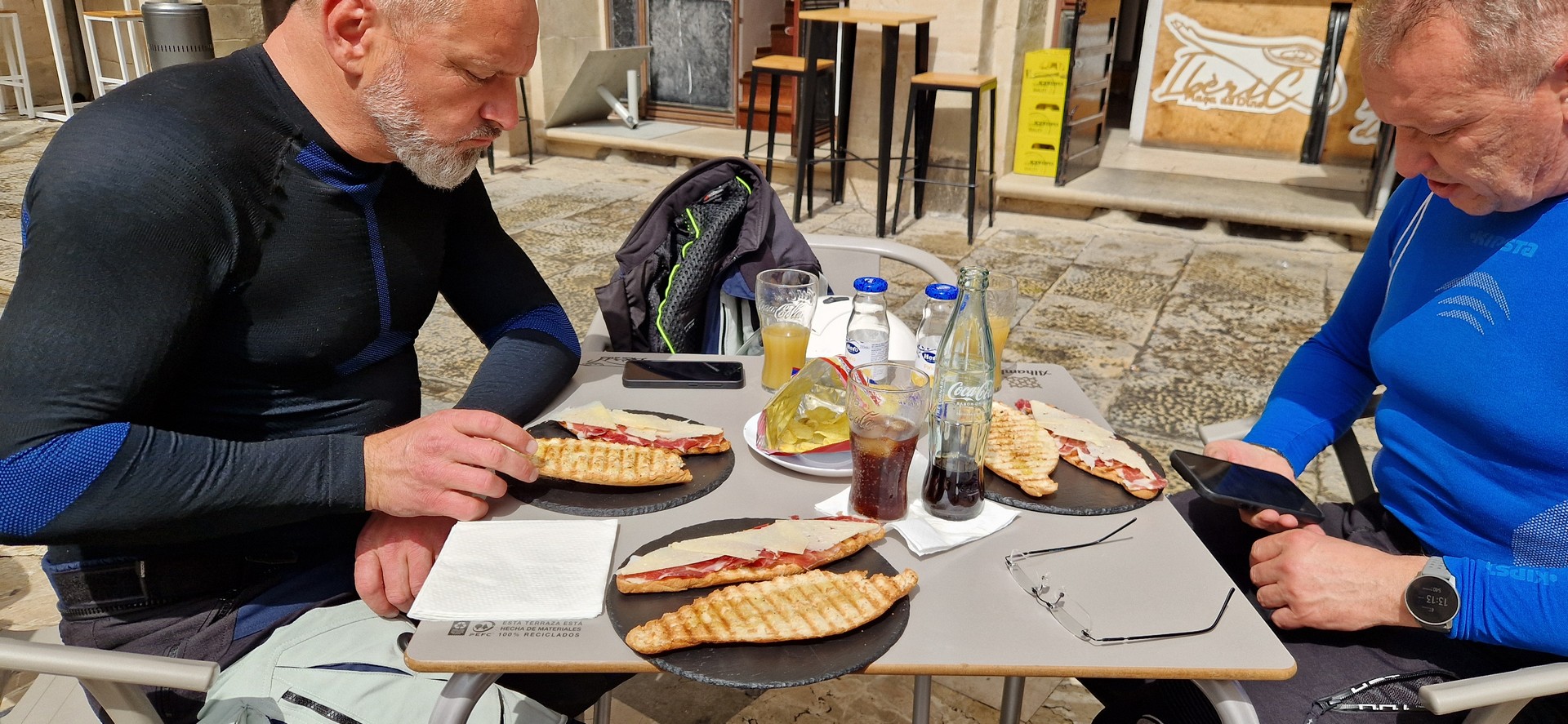 Przyszła pora na śniadanie w hiszpańskim stylu. Jemy je w malowniczym miasteczku – nazwy nie pamiętam. Już mi przypomiano Alcoy.