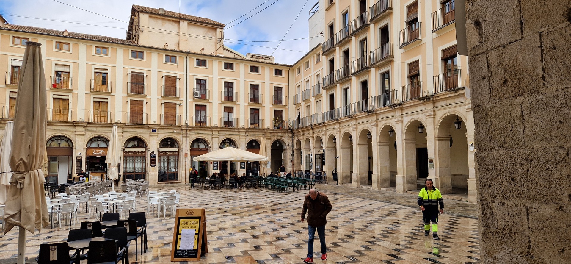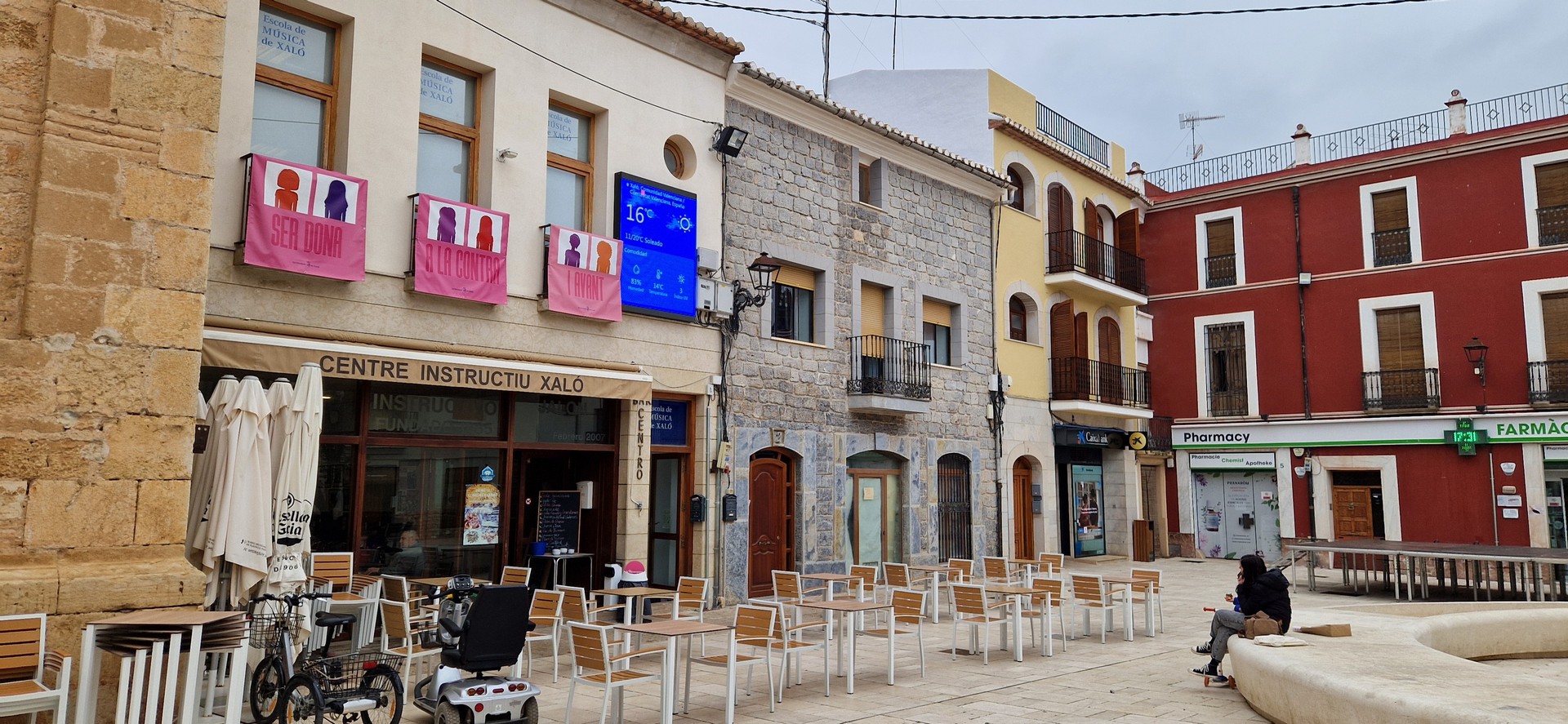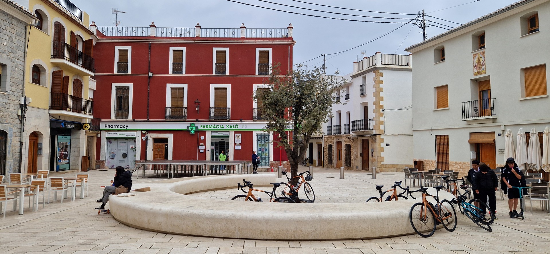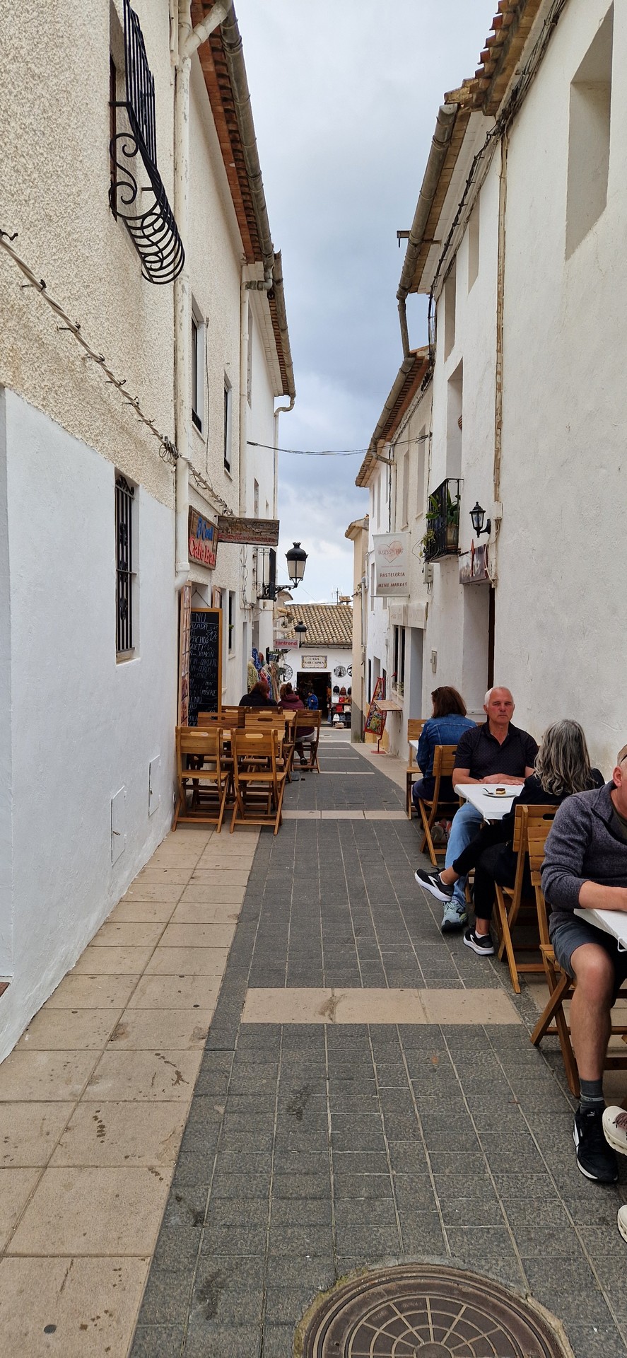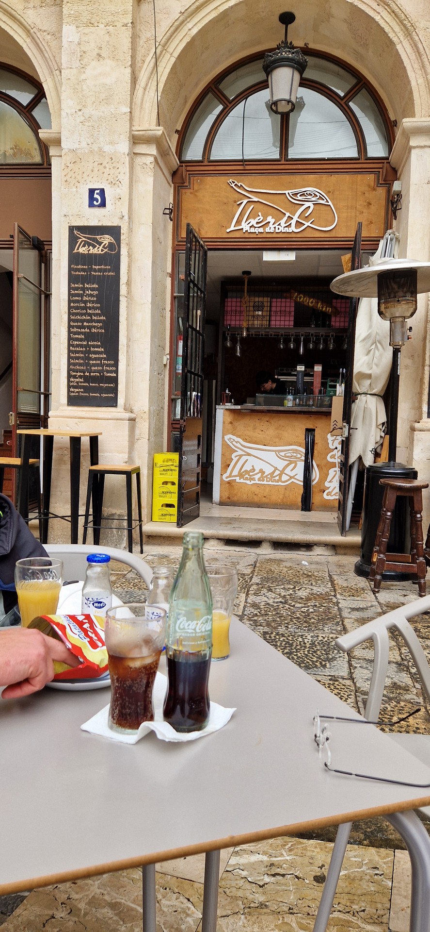 Przyszła pora na śniadanie w hiszpańskim stylu. Jemy je w malowniczym miasteczku – nazwy nie pamiętam. Już mi przypomiano Alcoy.