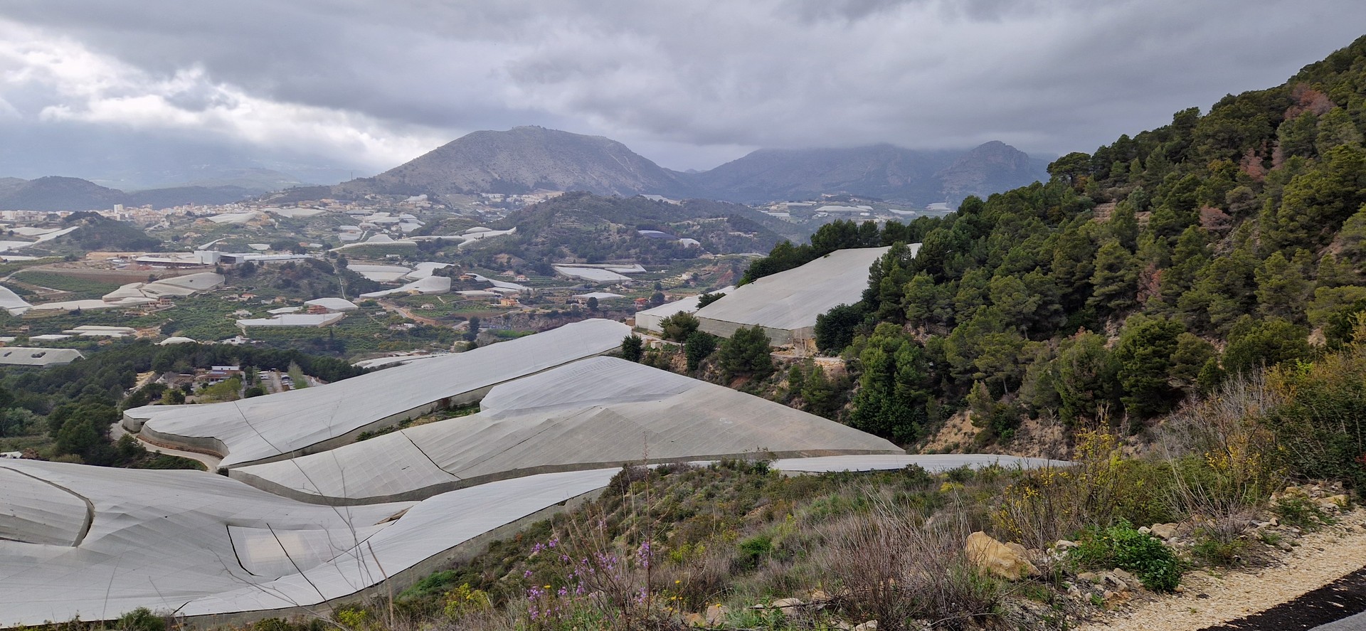 Jedziemy w górskie tereny. Dzieki częstym opadom deszczu w tym roku Alicante jest ciut zielone.