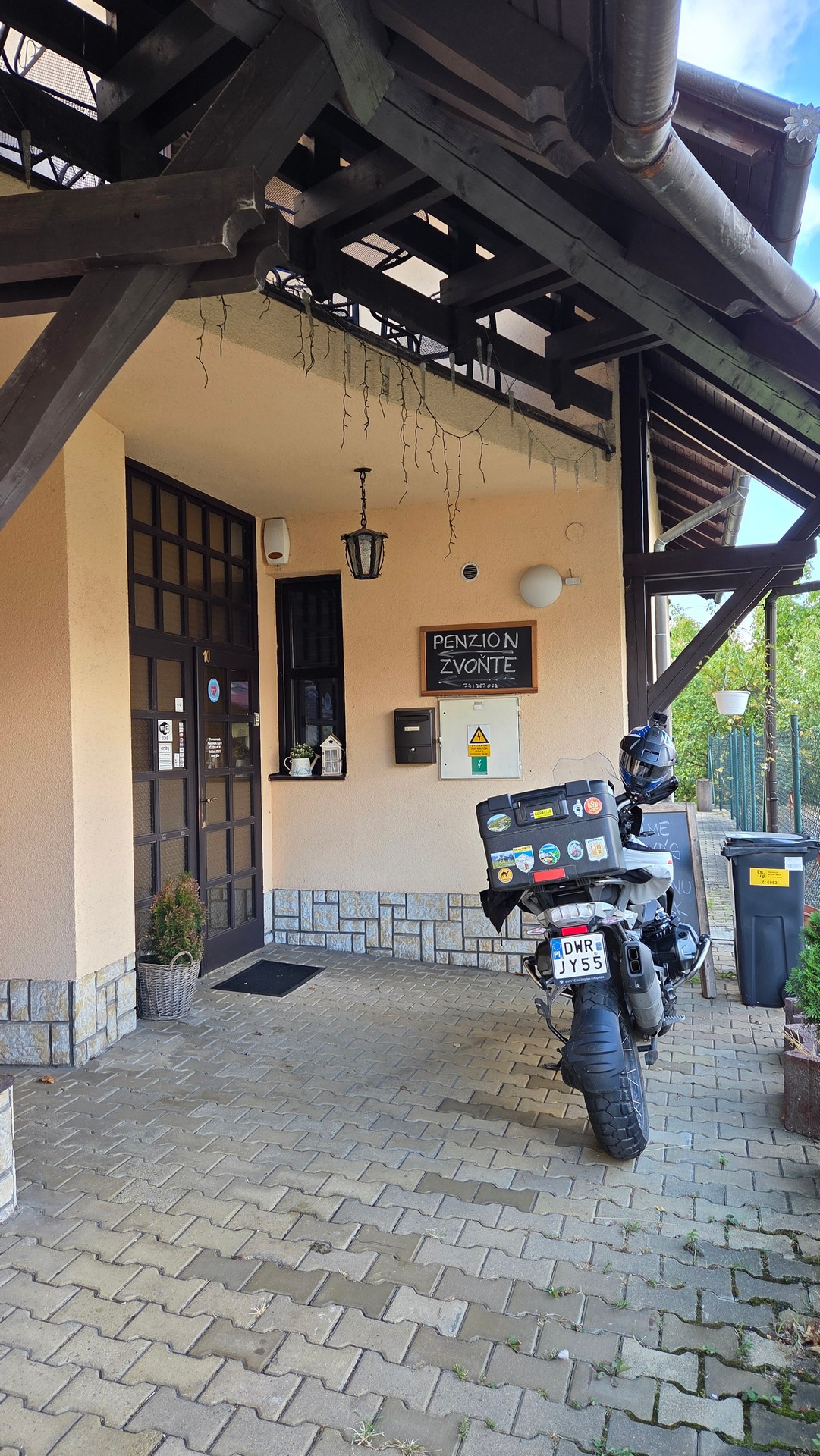 Dzień drugi, miał zacząć się wcześnie bo zapowiadała się ładna pogoda. Nistety po śniadaniu jak się montowałem na motocykl, wracając po resztę gratów złamałem klucz w zamku do pokoju, a spałem na drugim piętrze….Trochę zajęło sforsowanie drzwi ale udało się i tylko wkładka do zamka ucierpiała. Alternatywą był przyjazd “włamywacza” z Ostravy za kilka godzin i za 9000 czeskich koron 😉