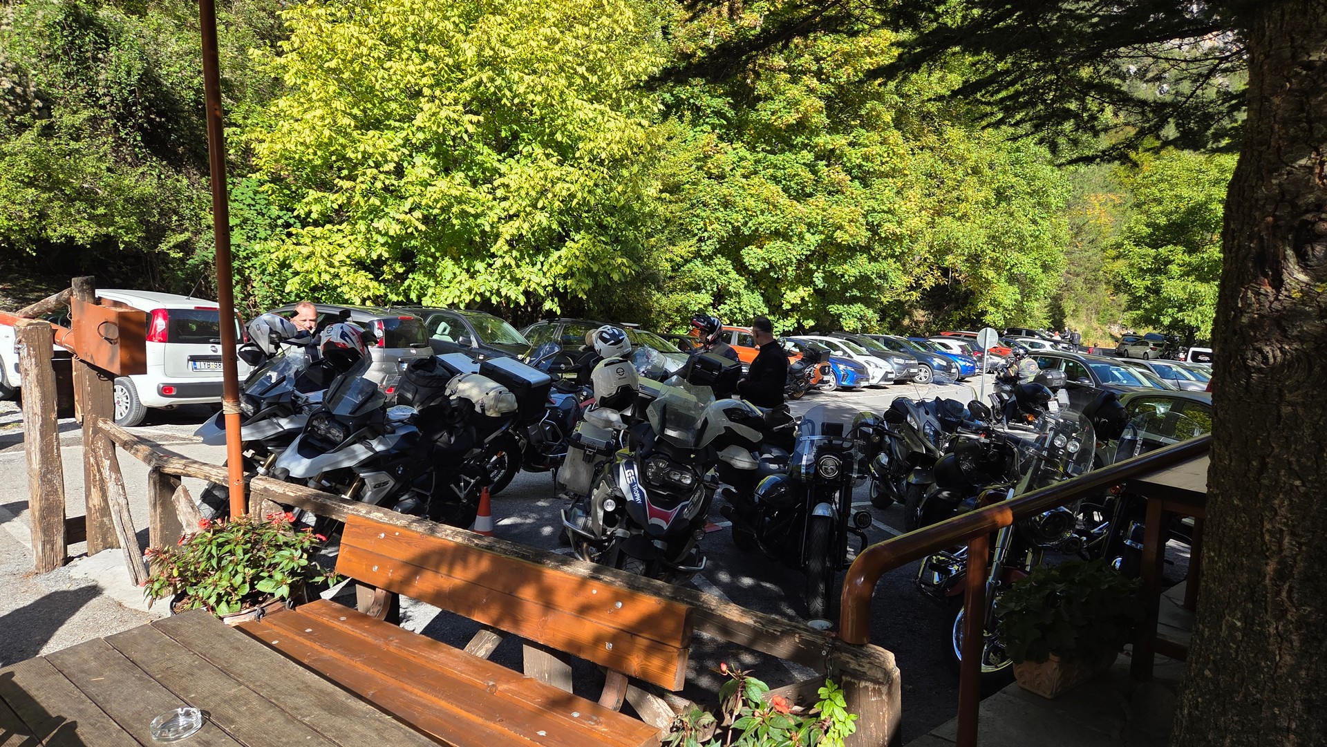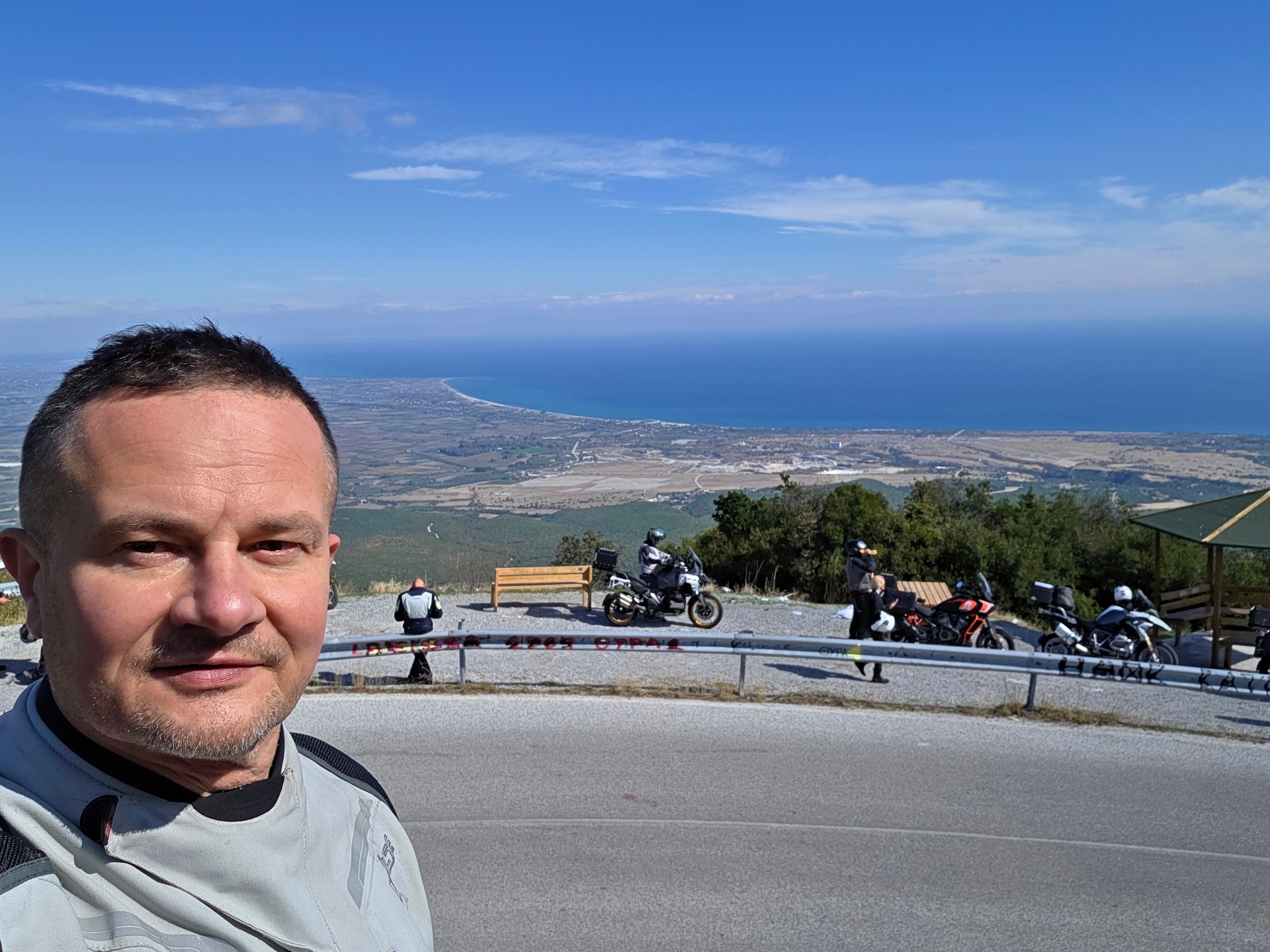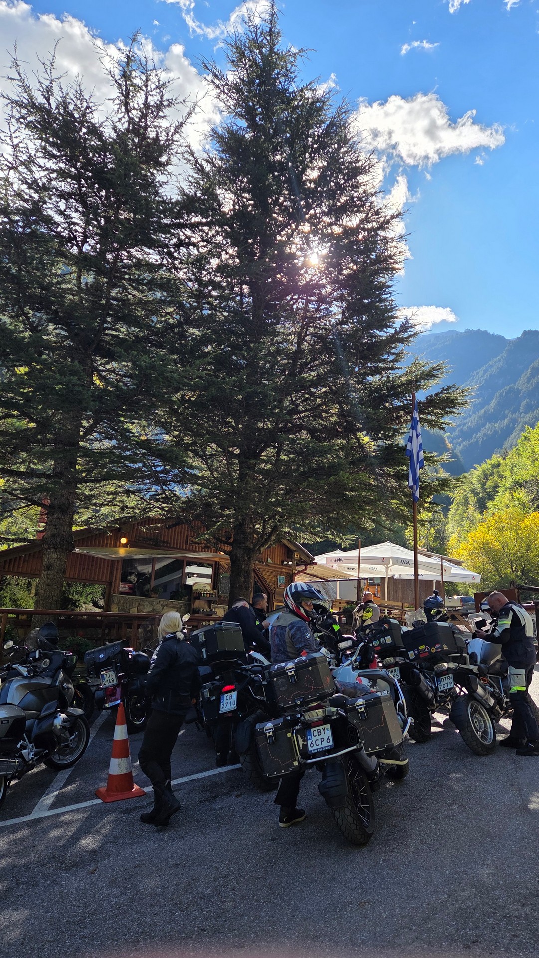 Nasz pierwszy cel to podjechać jak najbliżej góry Olimp. Pierwszy postój spowodowany był urwaniem się błotnika w bemce Rafała. Ale bemka nabrała charakteru bez tego plastiku 😉
