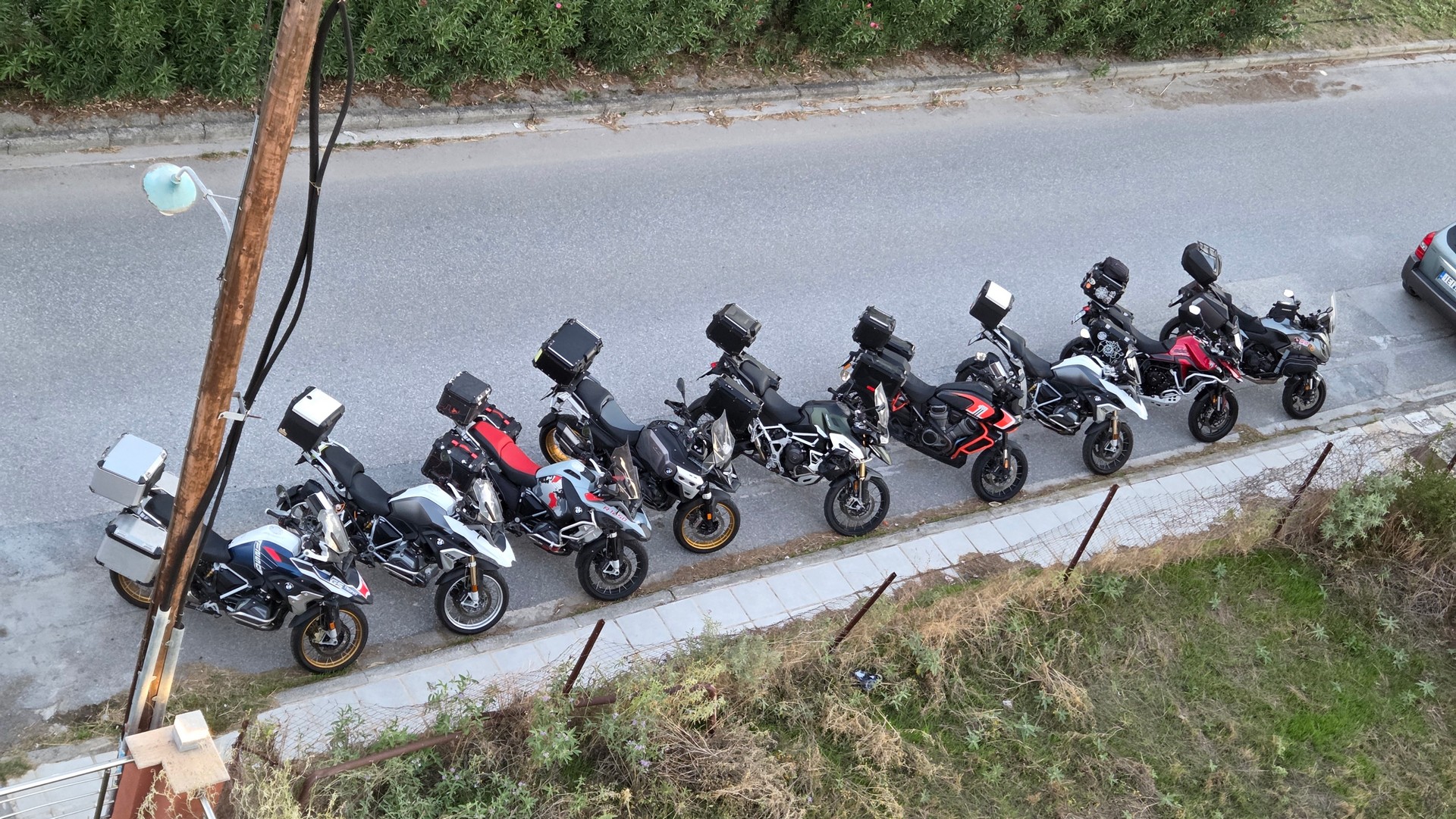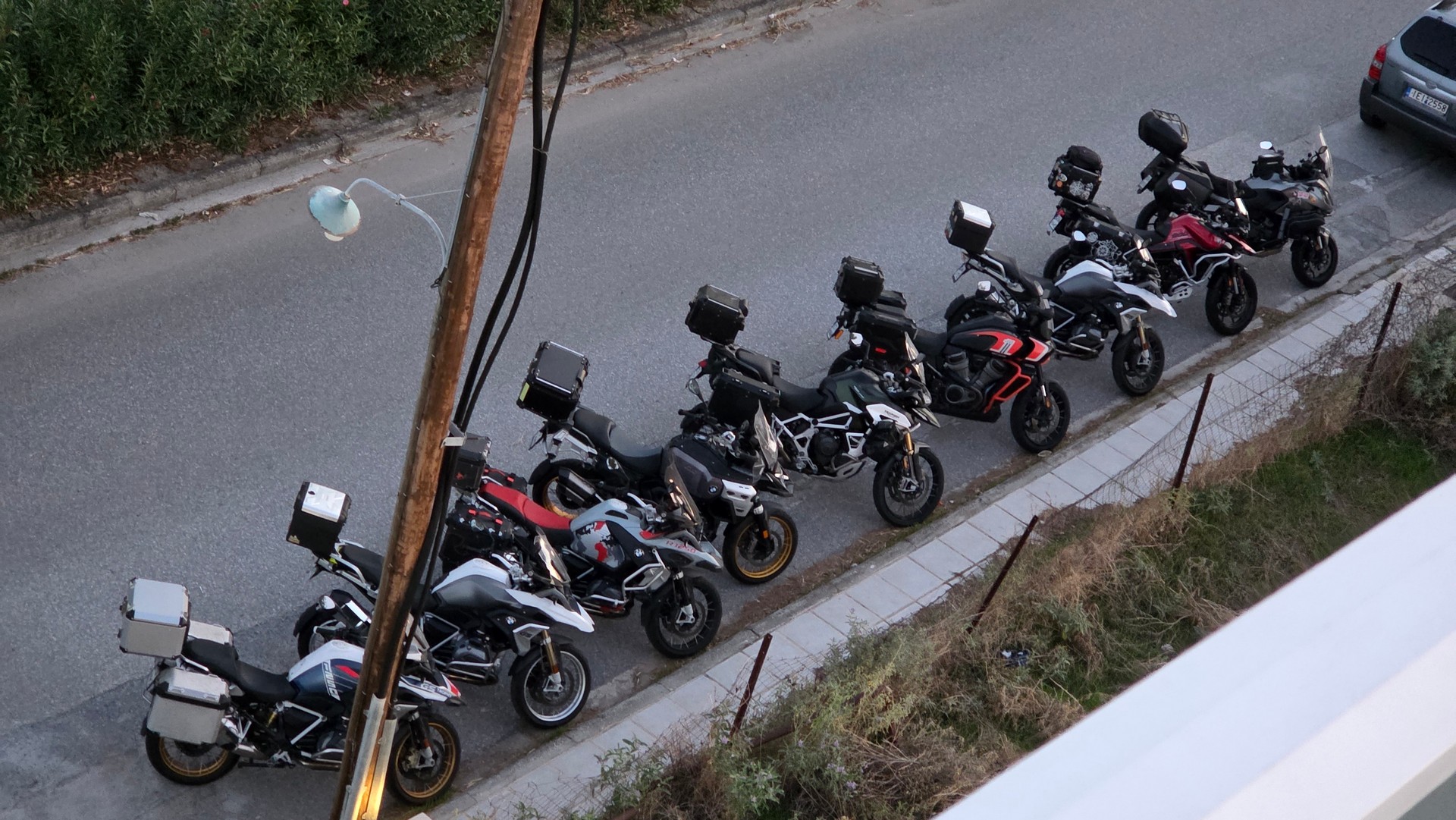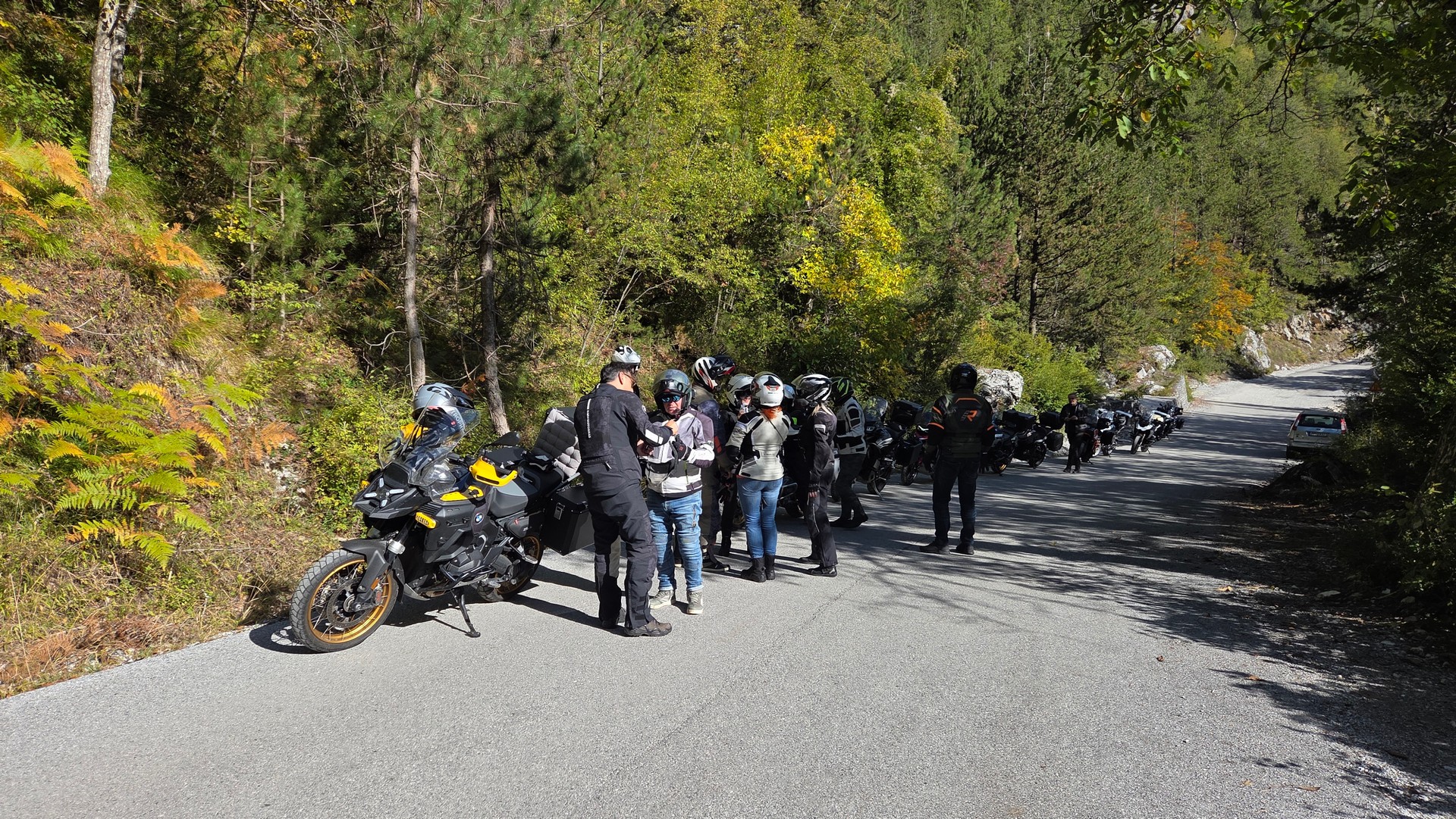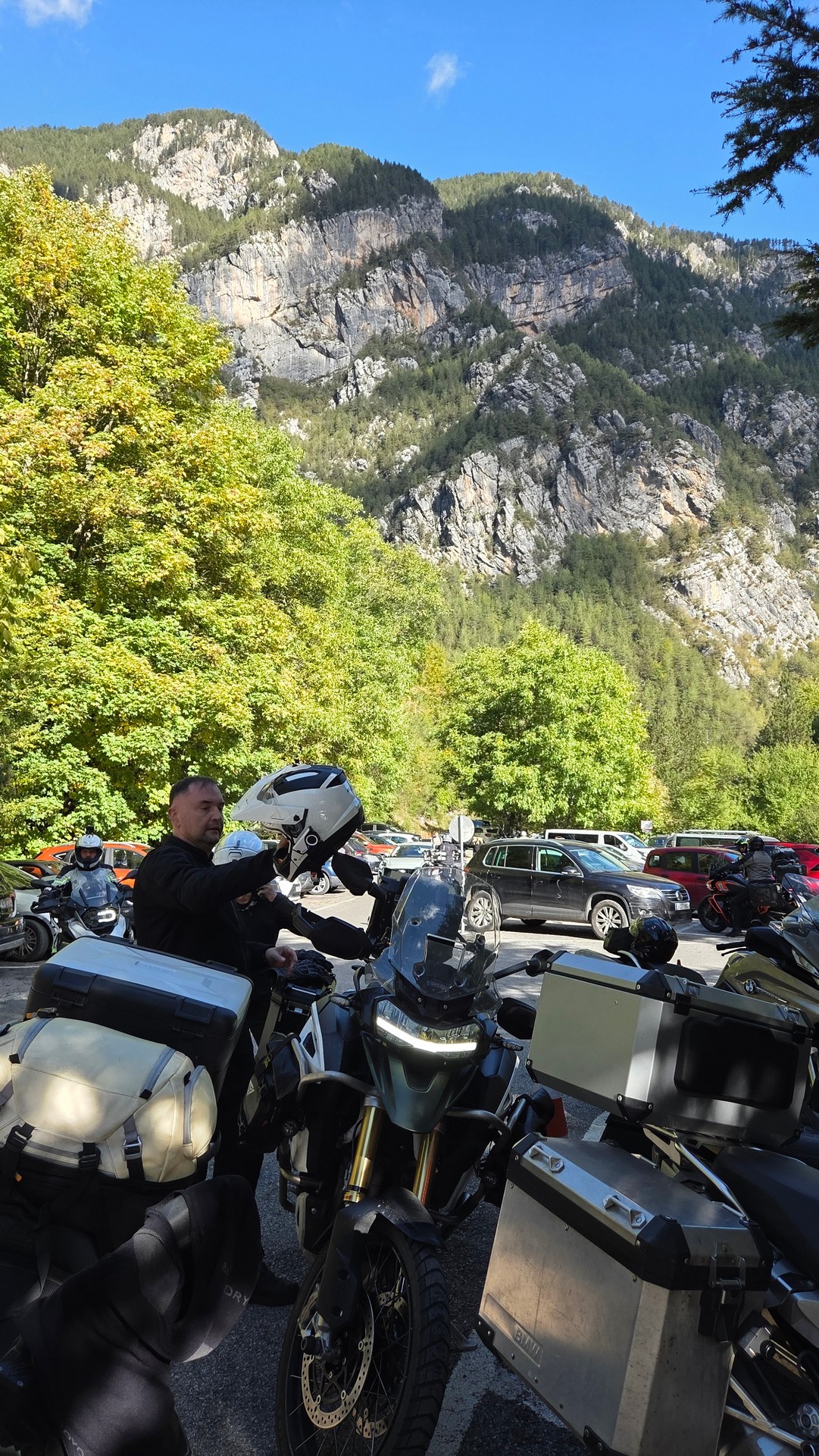 Nasz pierwszy cel to podjechać jak najbliżej góry Olimp. Pierwszy postój spowodowany był urwaniem się błotnika w bemce Rafała. Ale bemka nabrała charakteru bez tego plastiku 😉