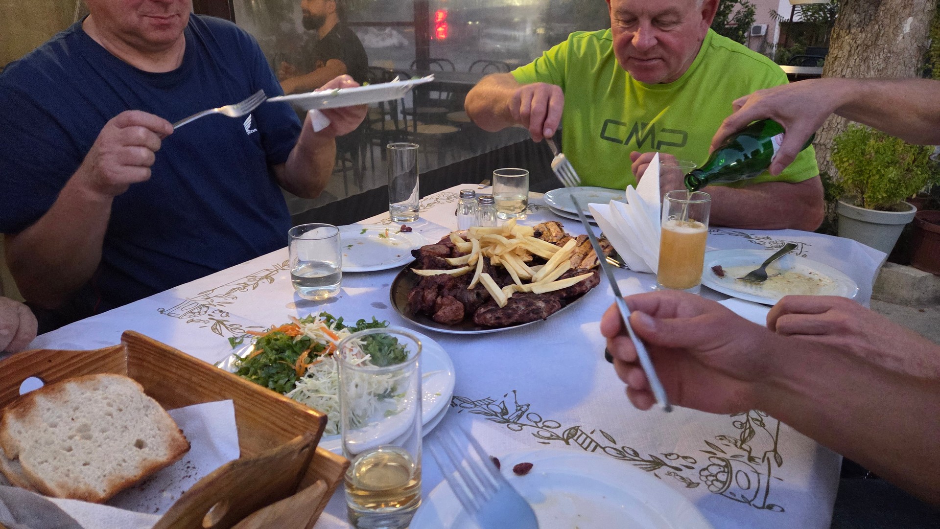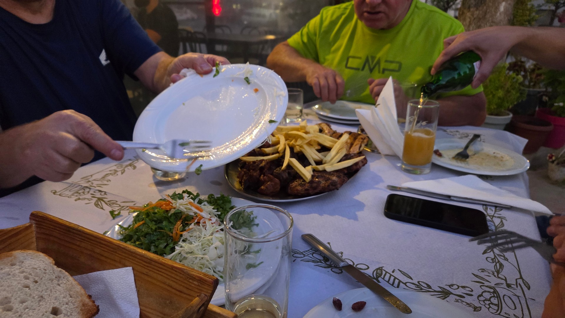 Chwilę po tym byliśmy najbliżej jak się da szczytu Olimpu ale nadal 2km niżej 😉 Był spacer i konsumpcja podobno smacznej zupy z jakiegoś zwierzęcego niemowlaka.