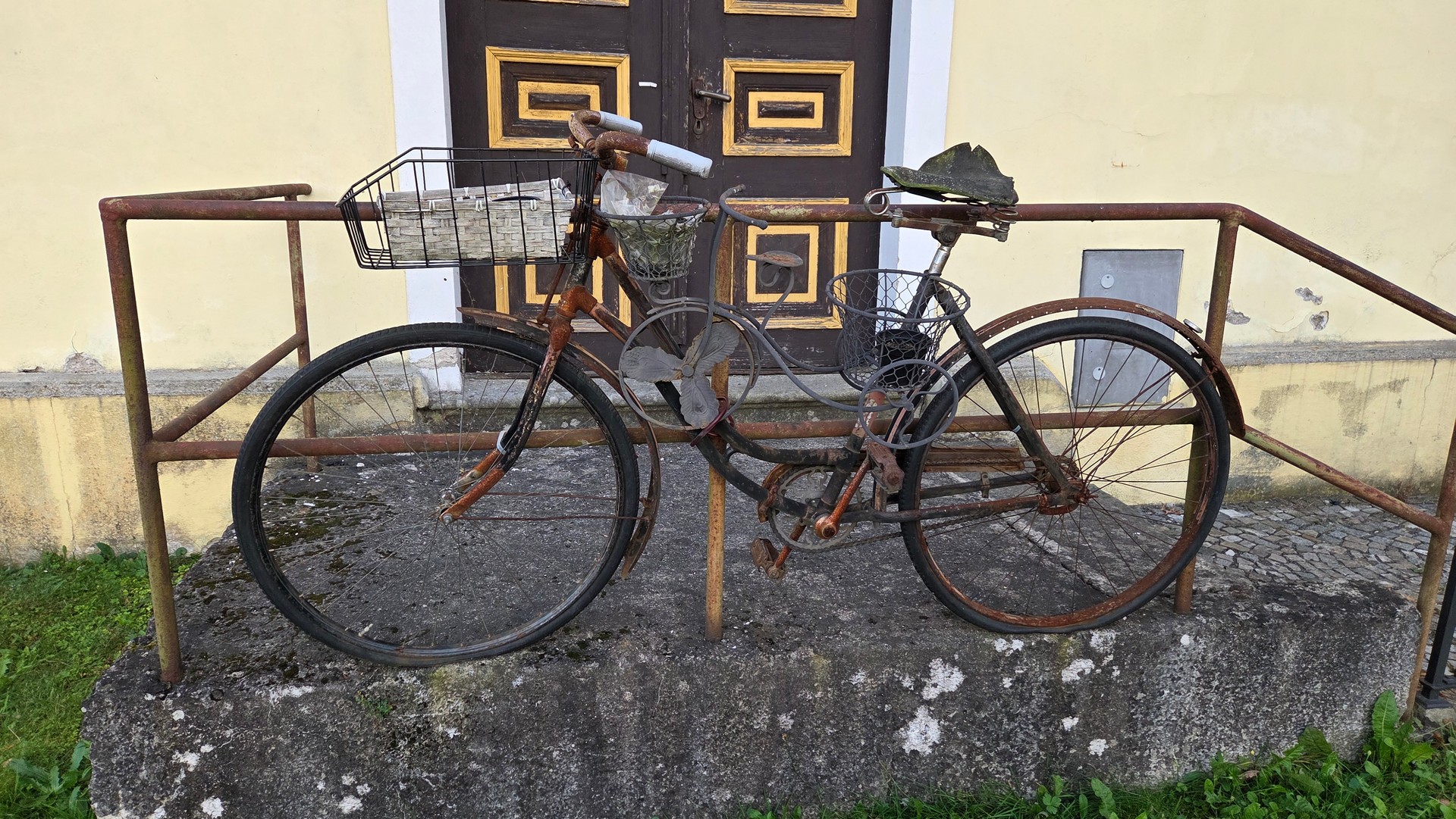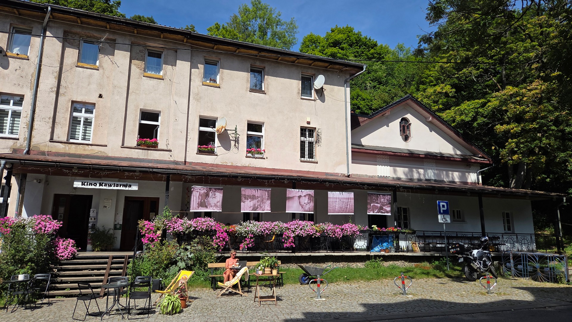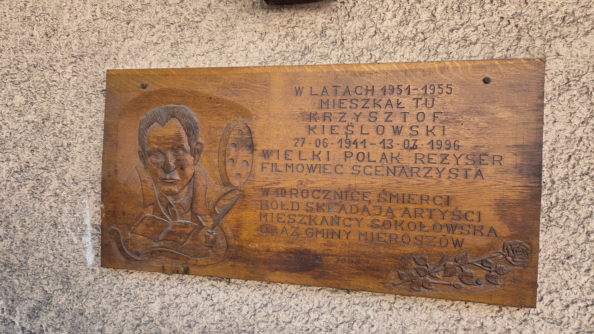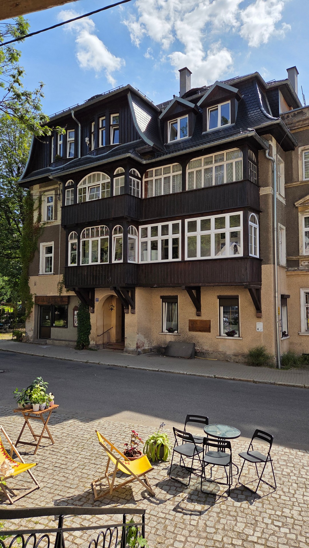 Przerwa na kawę i ciacho w Sokołowsku przed domem, w którym mieszkał Kieślowski.