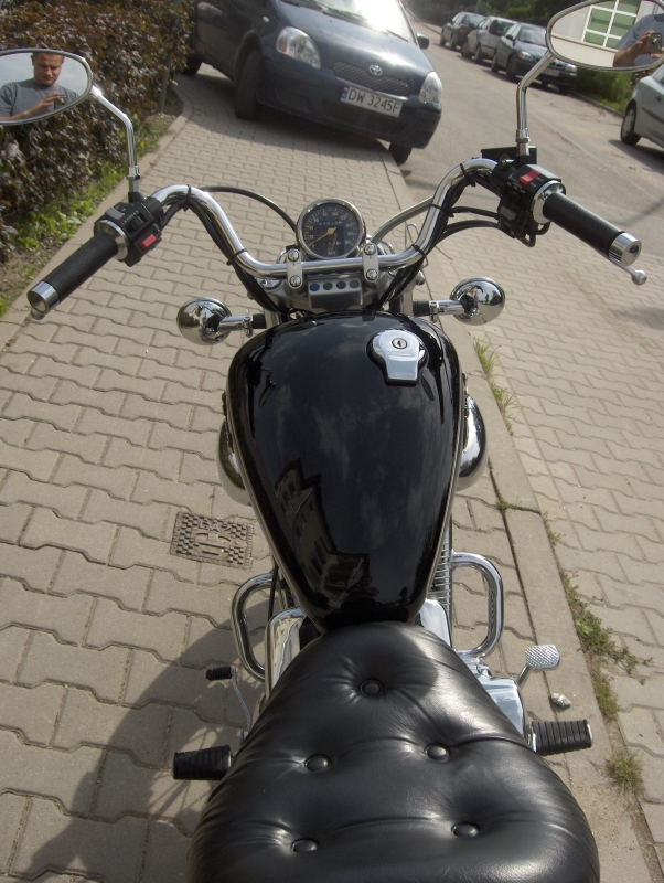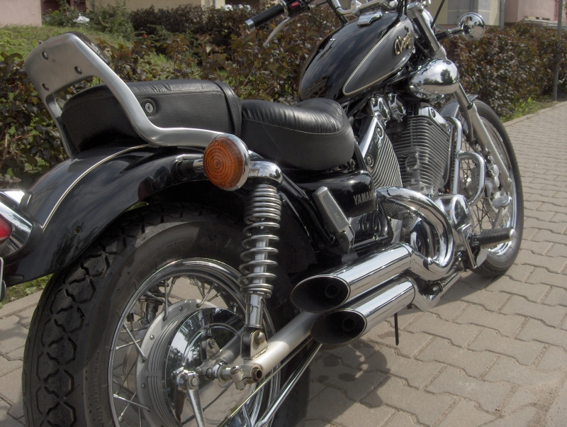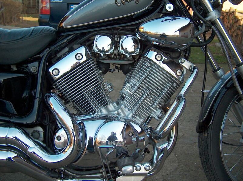 Chłodzony powietrzem silnik V2 z SOHC o pojemności535 cm3 Podwójny chromowany tłumik Wyjatkowo wygodna kanapa kierowcy oraz pasażera Szprychowe koła Podwójny tylny amortyzator Napędzany niezawodnym wałkiem kardana Przednie hamulce tarczowe Pikowane siedzenia Chromowane pokrywy silnika Podwójne tłumiki „Shotgun” |